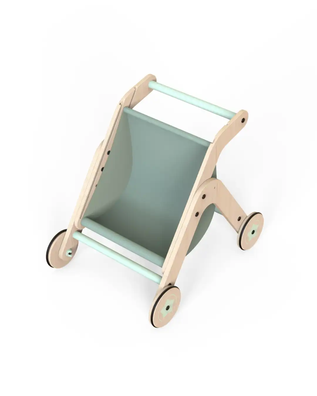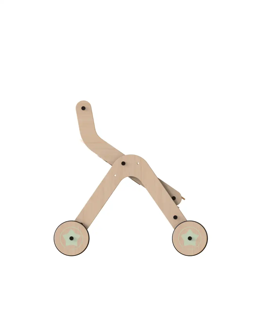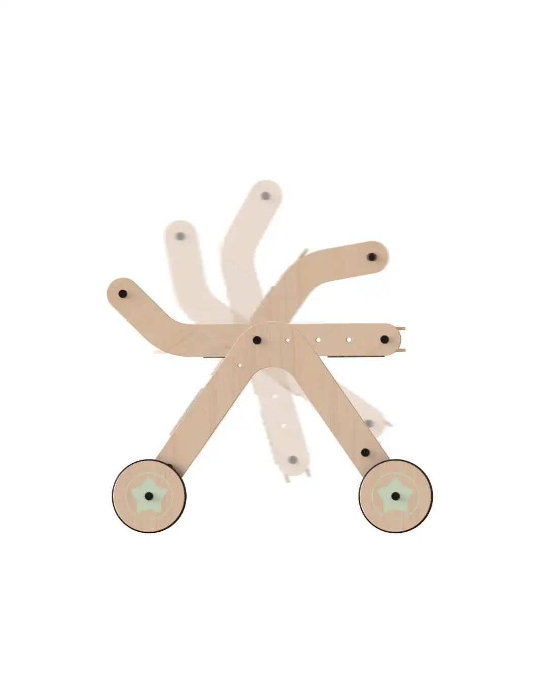 • Drvena konstrukcija obezbeđuje čvrstoću, a točkovi pružaju stabilnu podršku pri kretanju