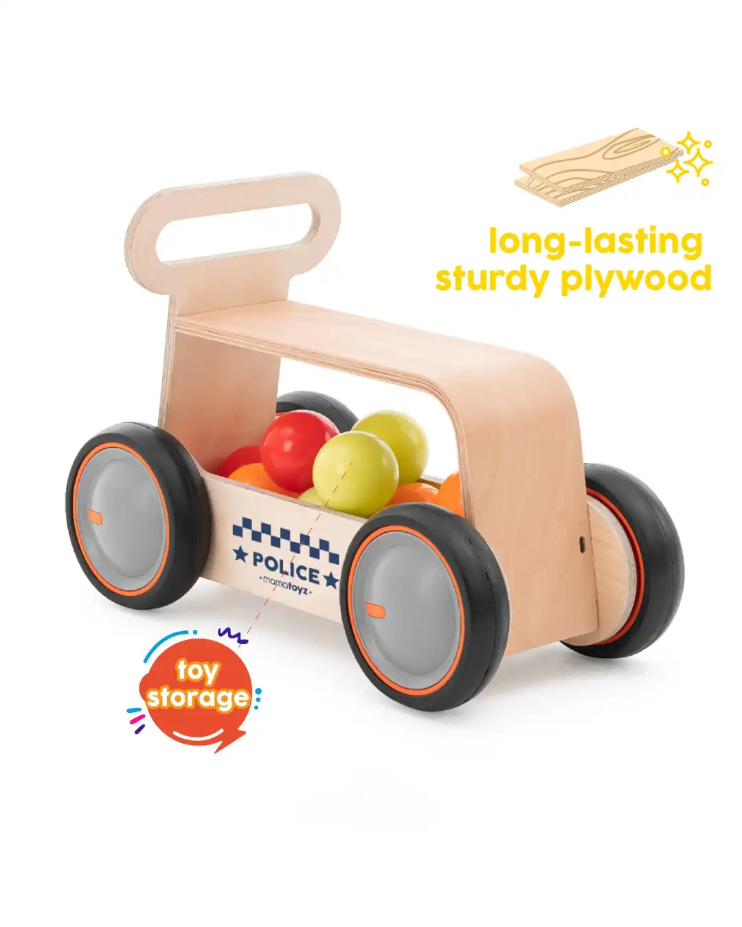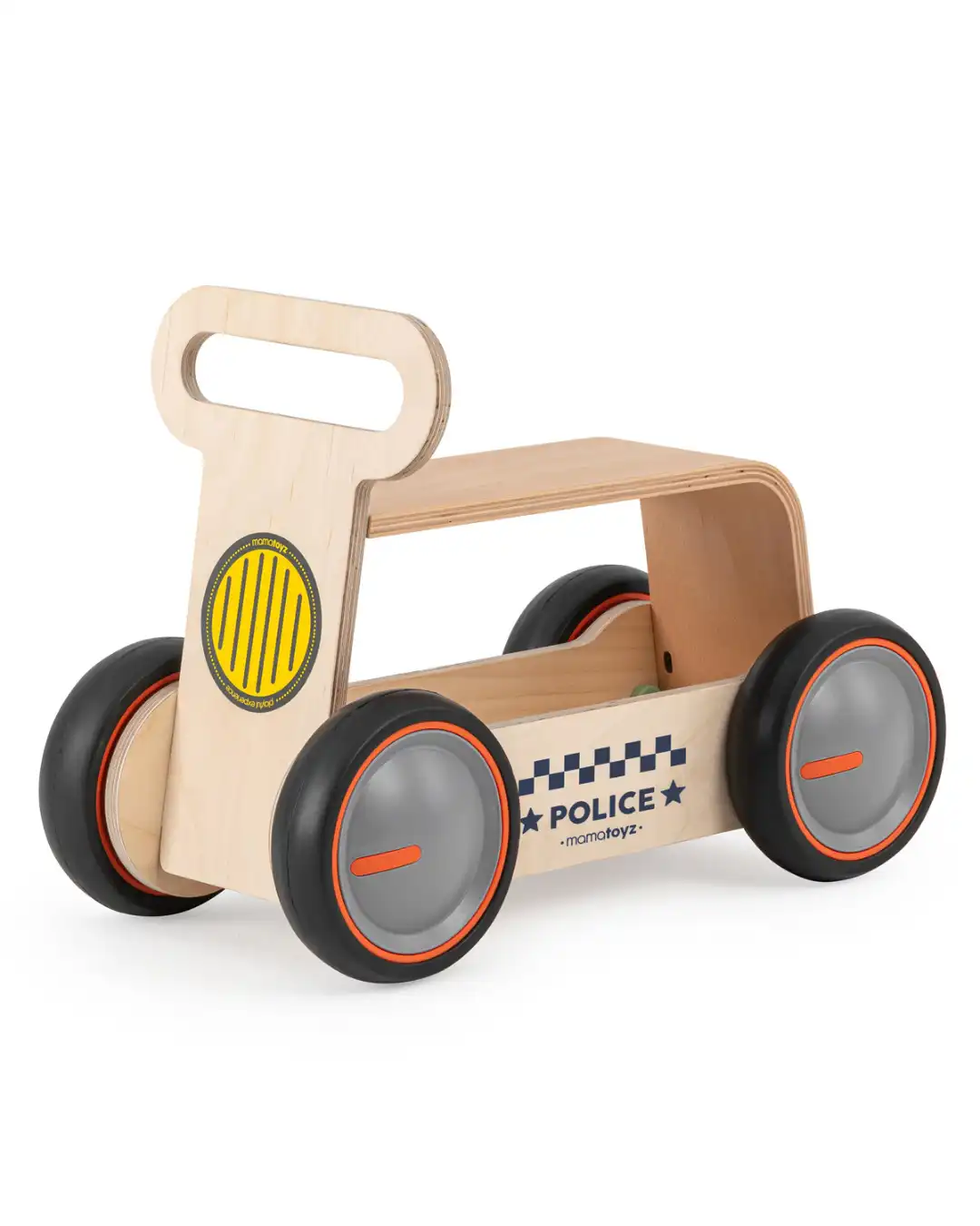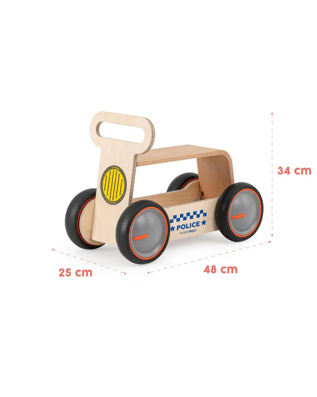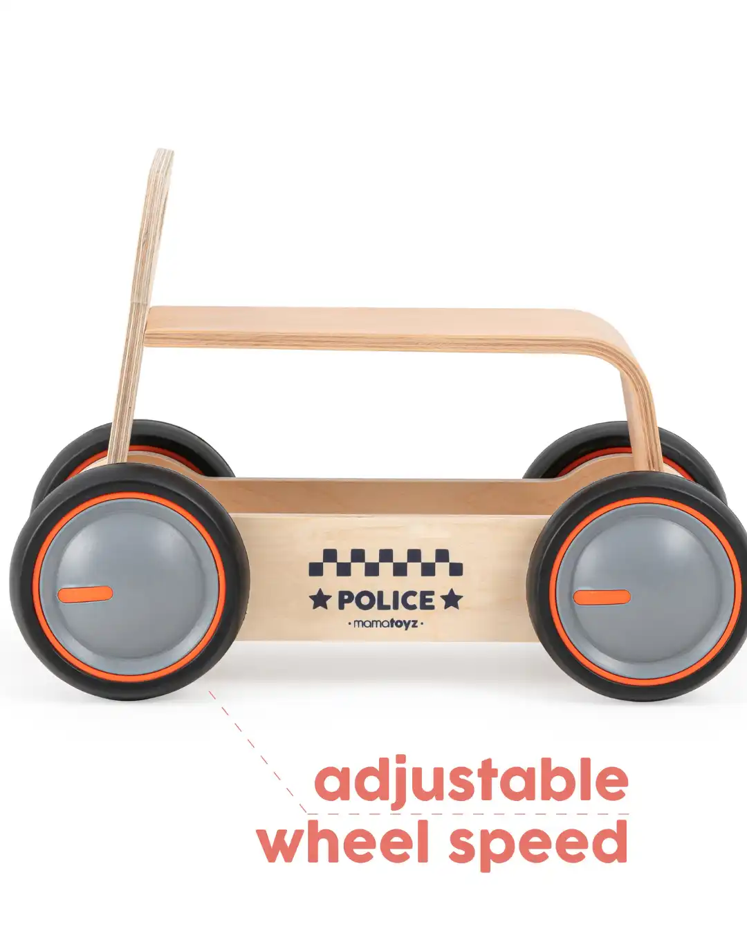 Dizajn je inspirisan  vozilom hitne pomoći, sedište  je napravljeno od savijenog drveta i zajedno sa točkićima sa podesivom brzinom, pružiće sate i sate zabave vašem mališanu na putu ka prvim koracima.