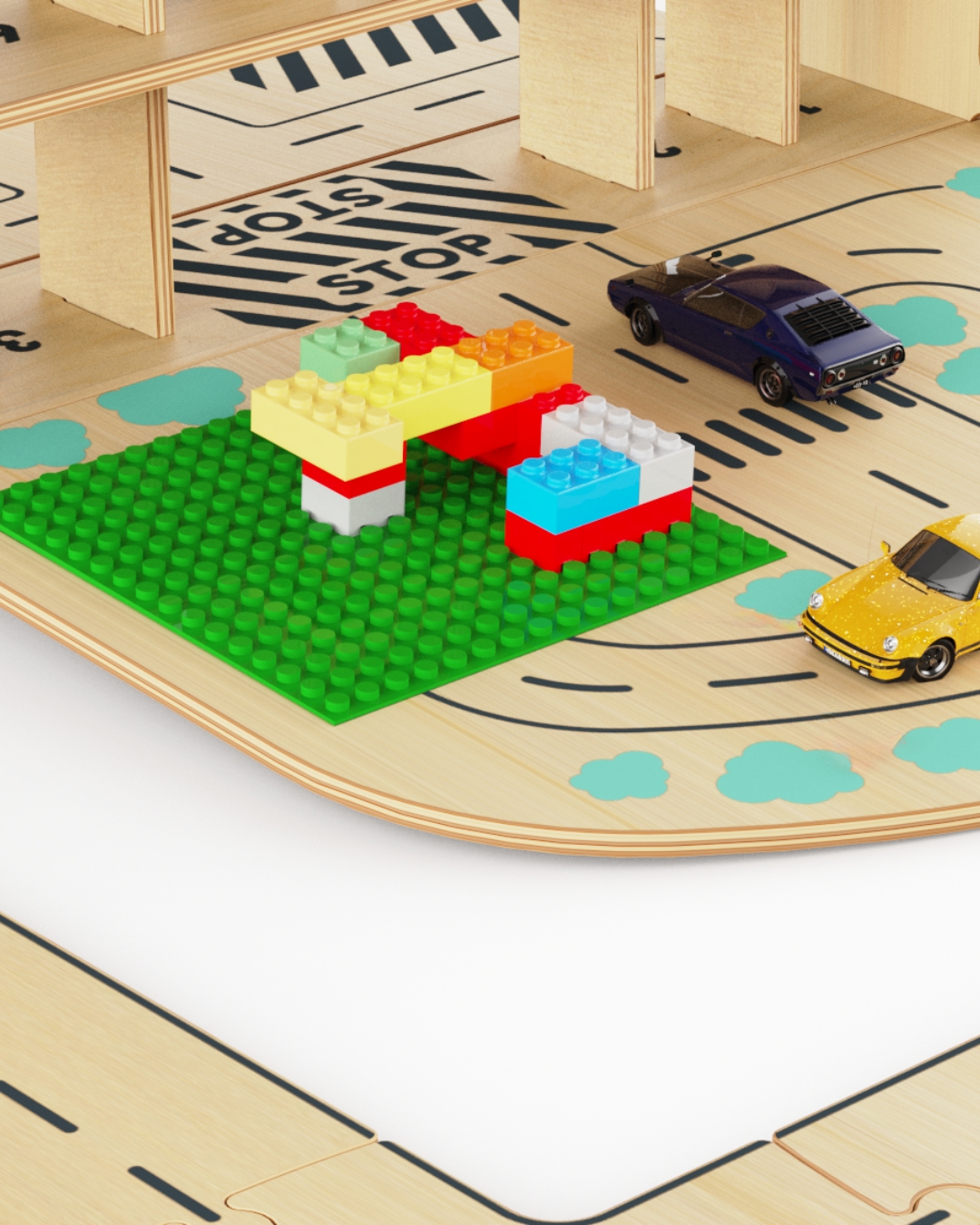 • Podržava finu motoriku i logičko razmišljanje zahvaljujući liftu, rampi i parking mestima