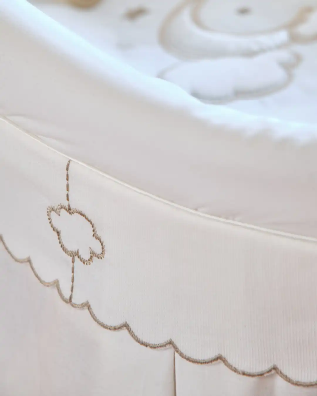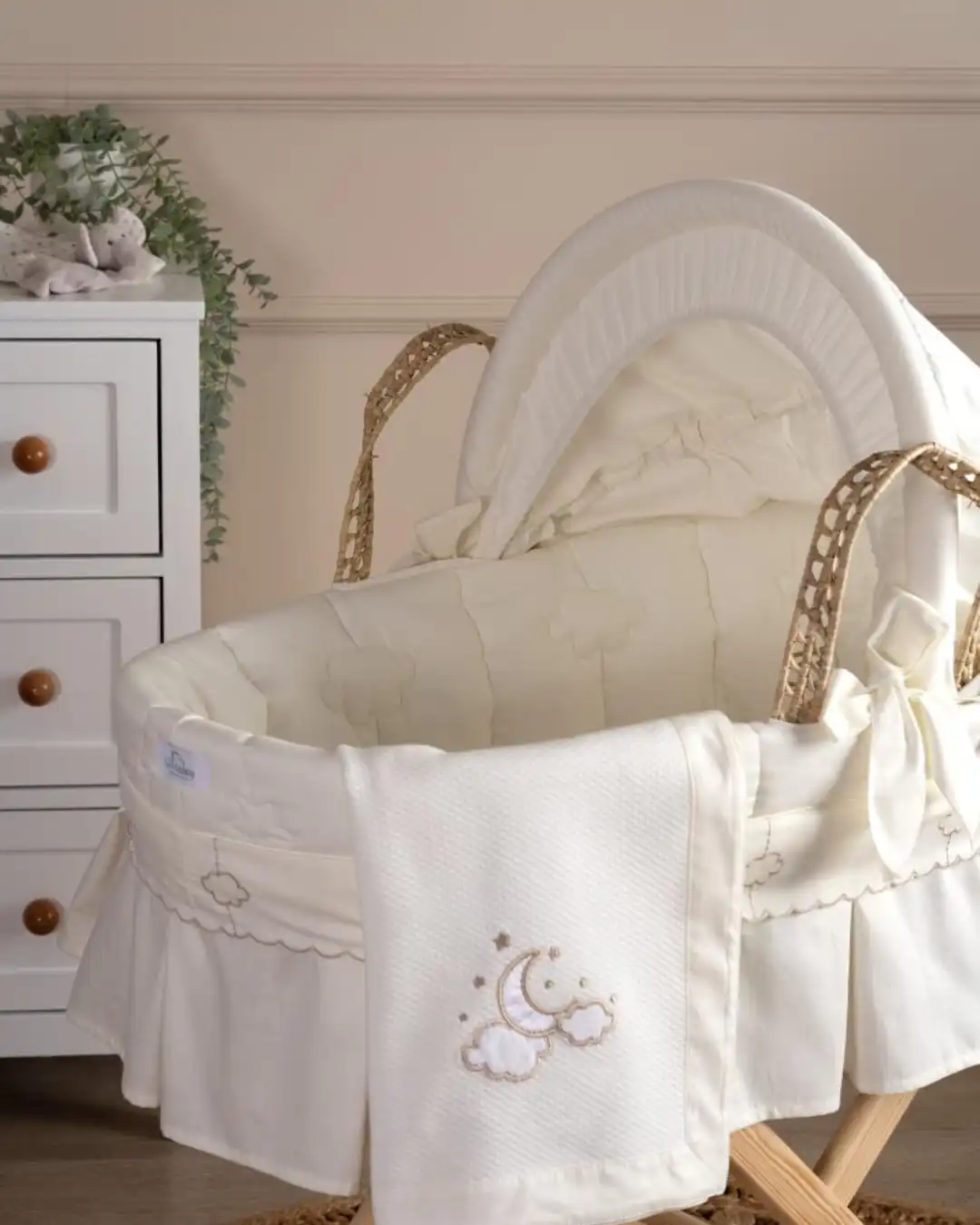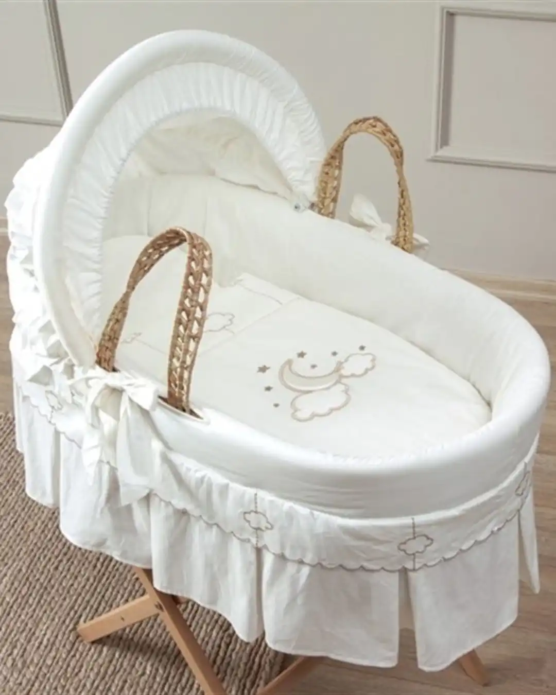 Pažljivo napravljena, ova šarmantna kolevka je savršena za ugodne dremke i slatke snove. Njena meka, podstavljena unutrašnjost i čvrsta ručka olakšavaju premeštanje iz sobe u sobu, dok nežna tkanina osigurava da vašoj bebi bude udobno i sigurno za prvih nekoliko meseci.