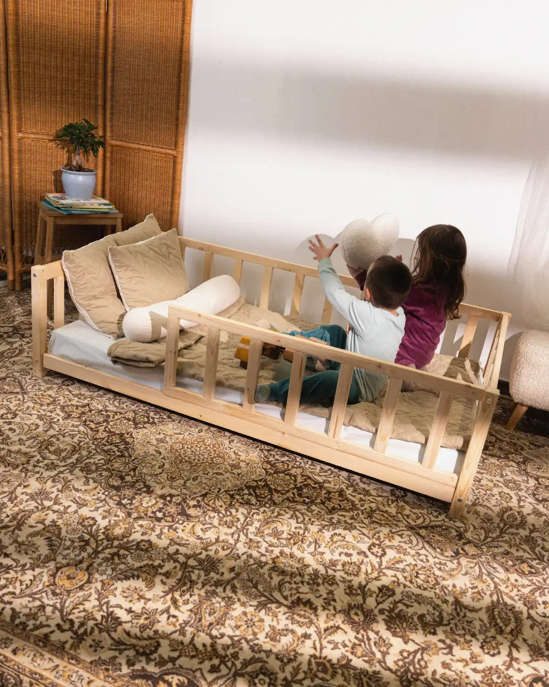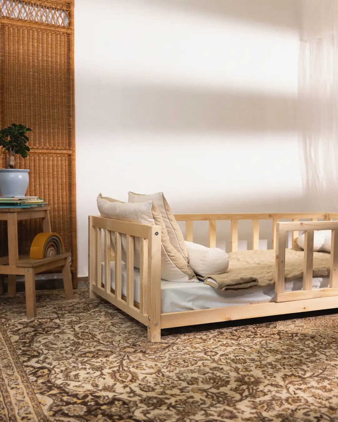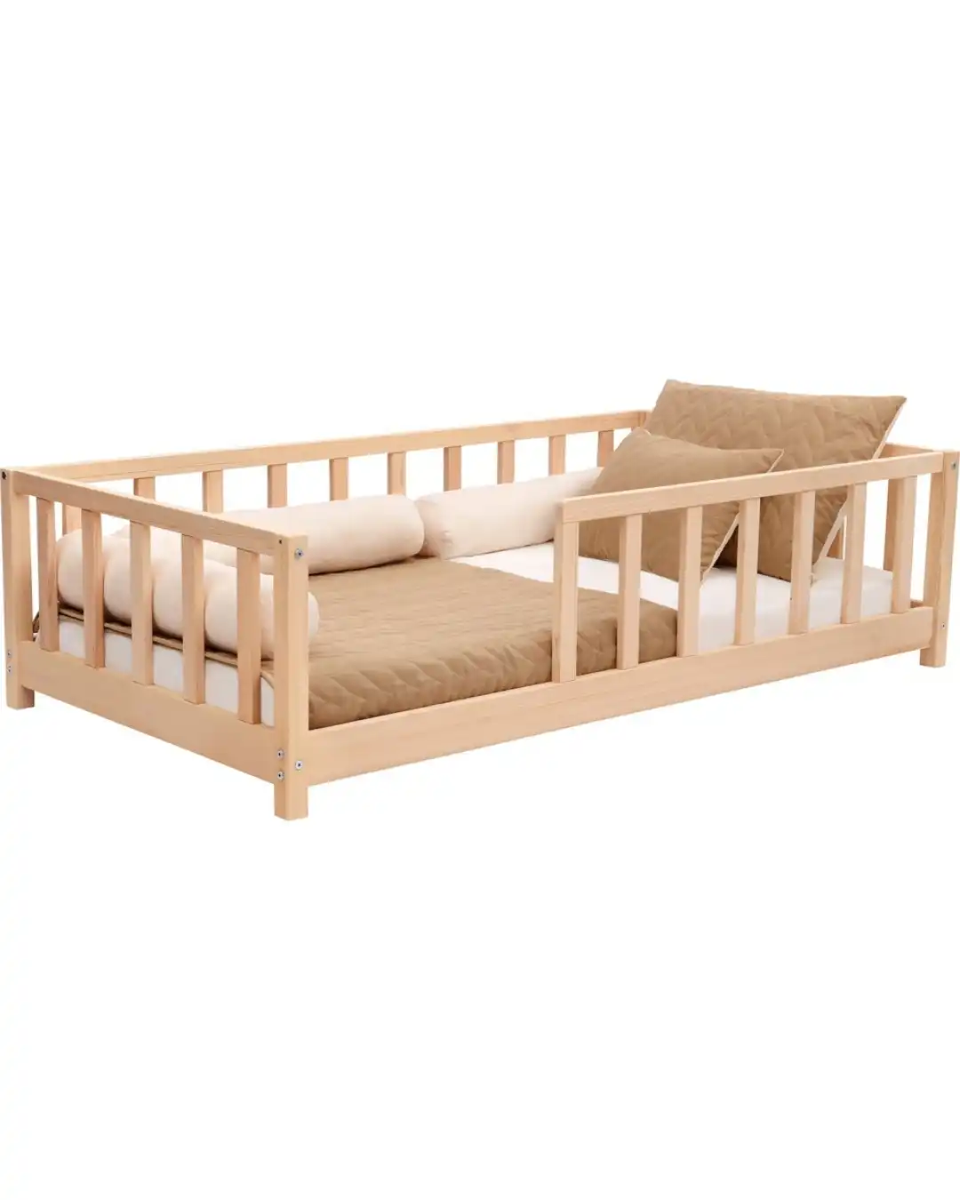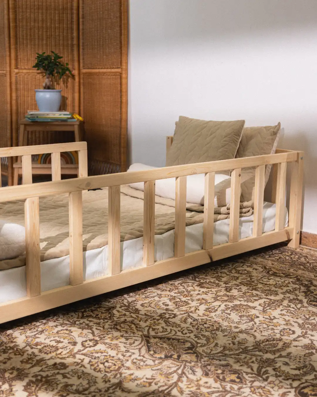 Drveni montesori podni krevet sa ogradicom – Haven – 90×200 cm