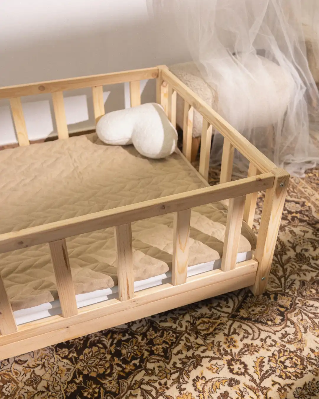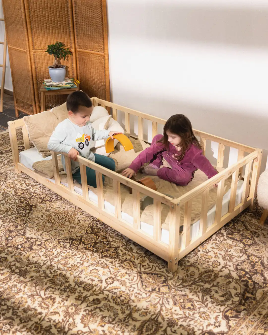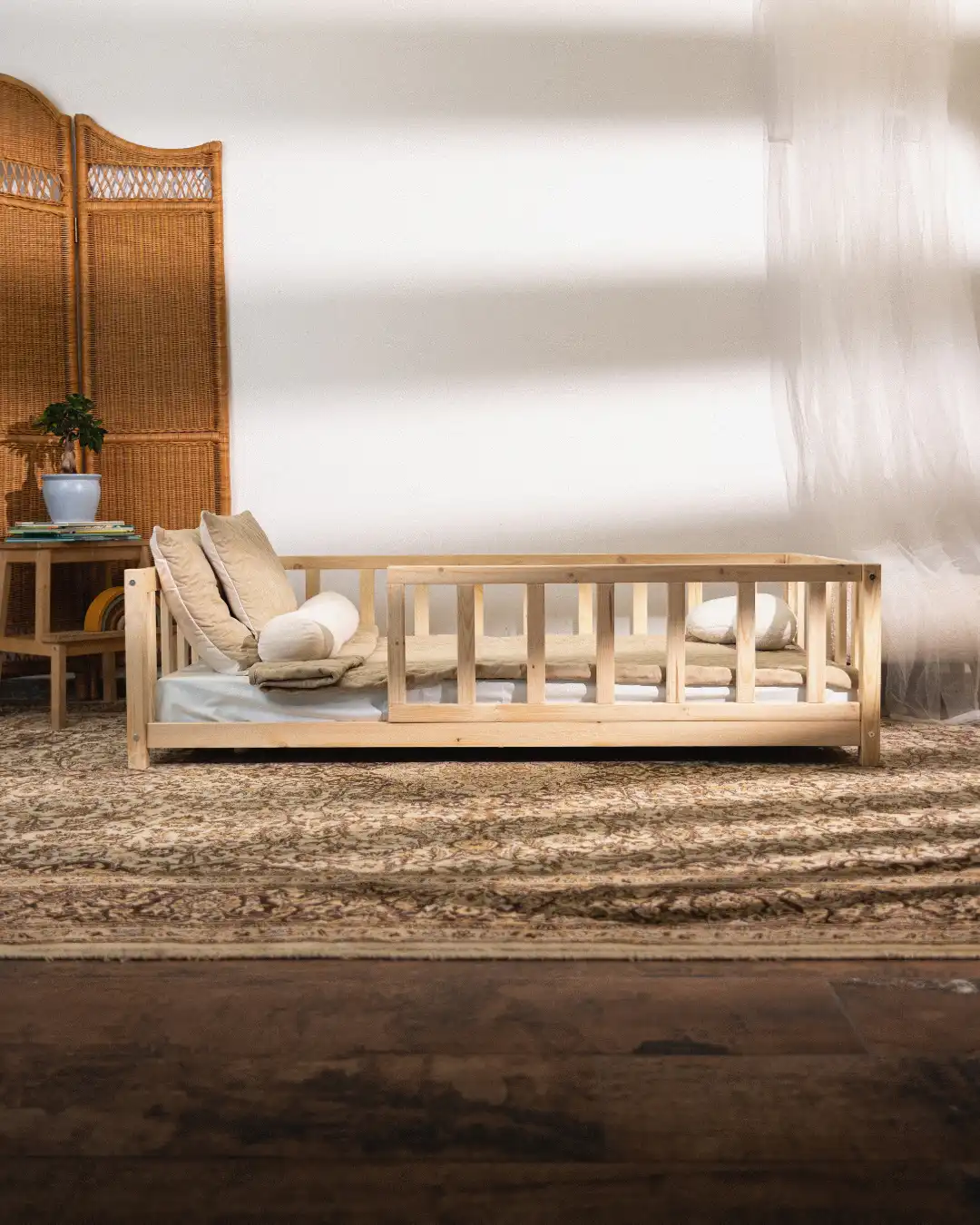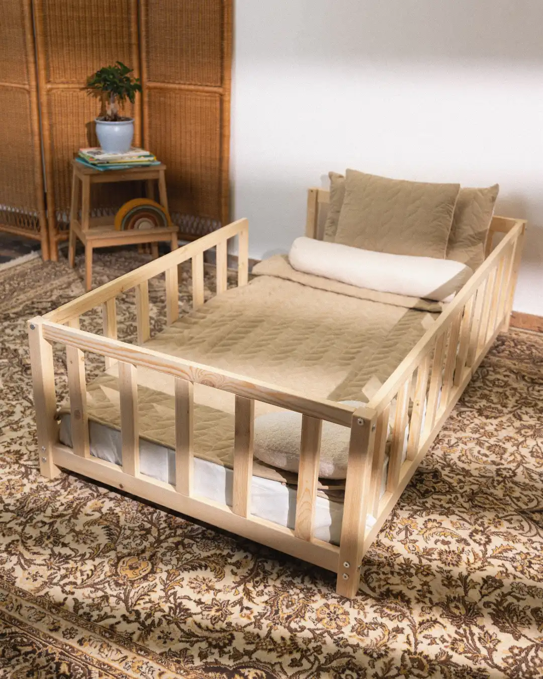 Drveni montesori podni krevet sa ogradicom – Haven – 90×200 cm