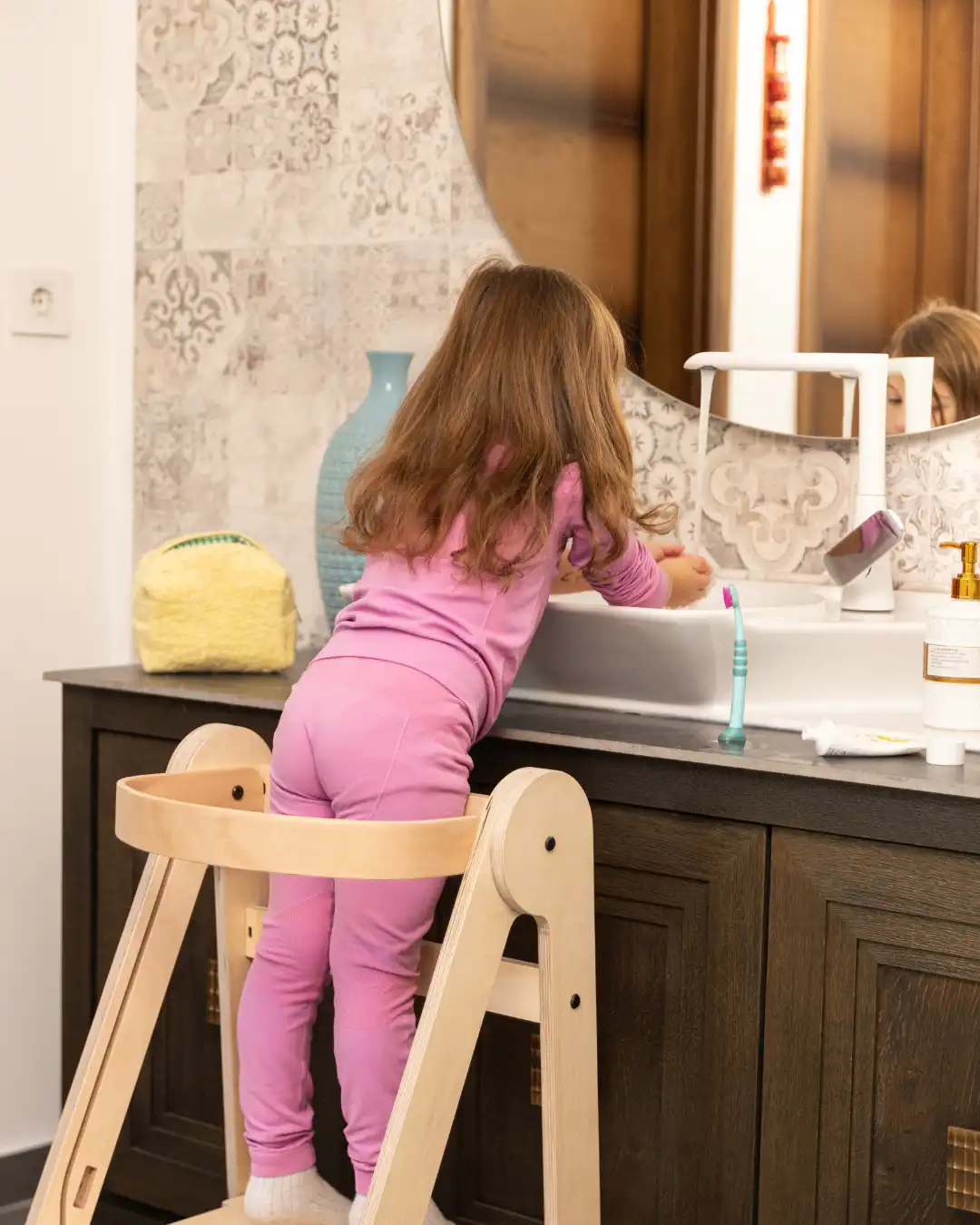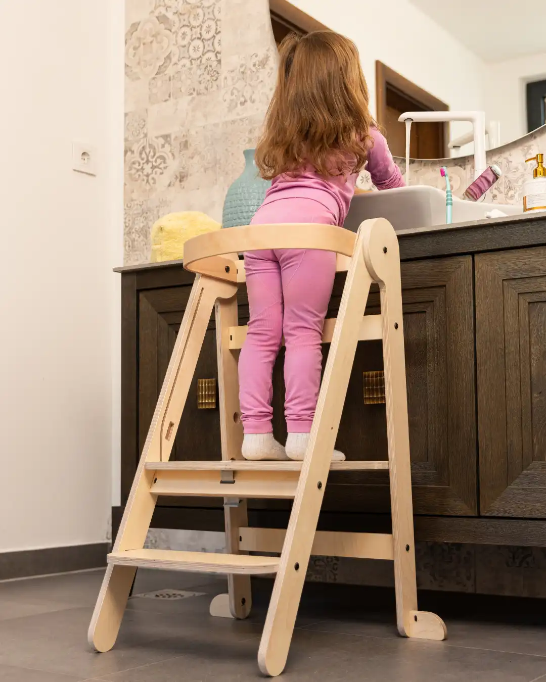 Omogućava deci da bezbedno dostignu visinu i pomaže im da steknu nezavisnost u kuhinji, kupatilu ili drugim prostorima.