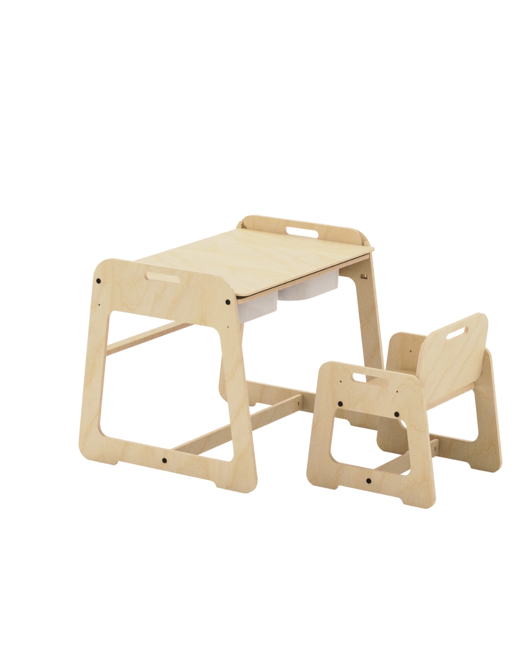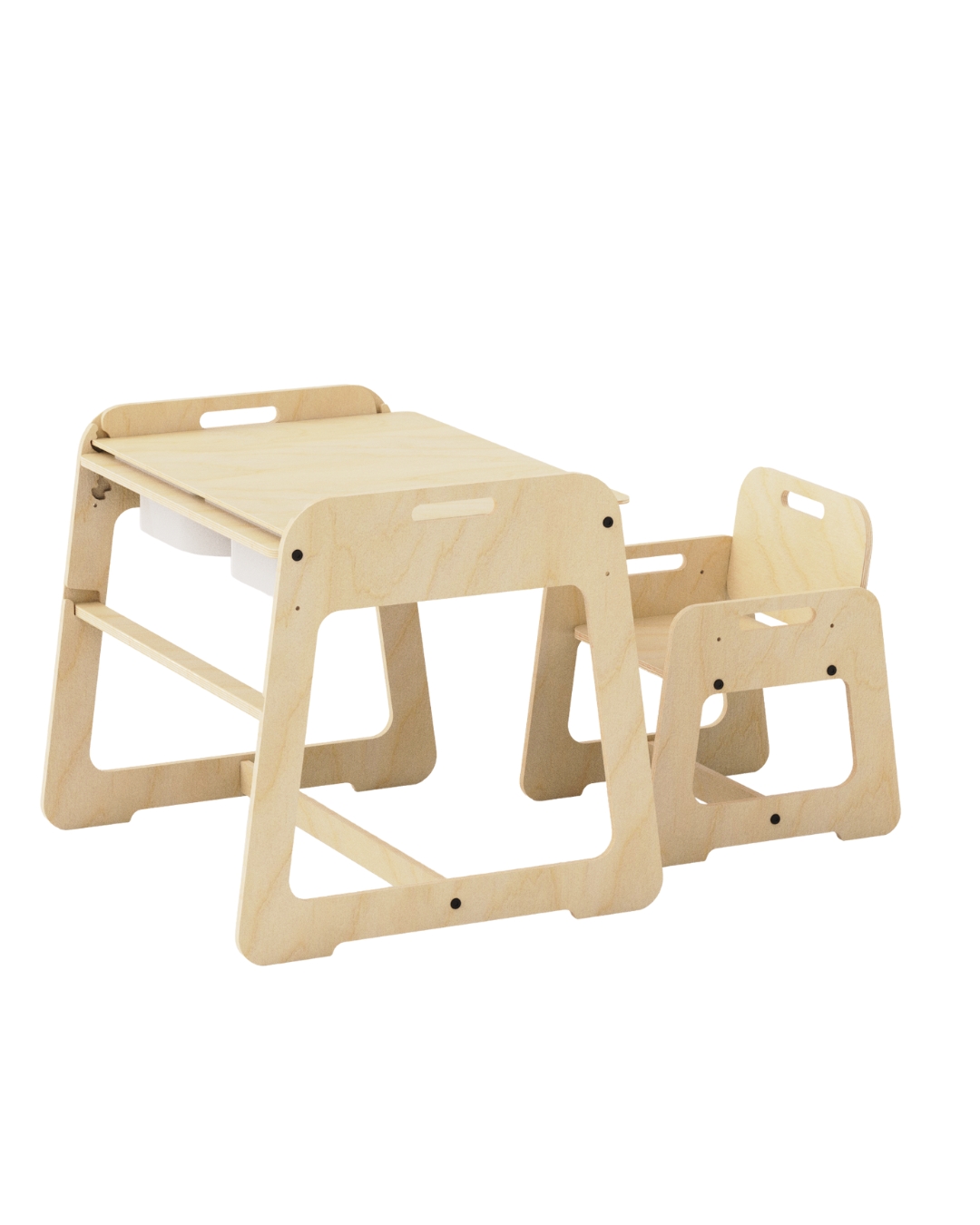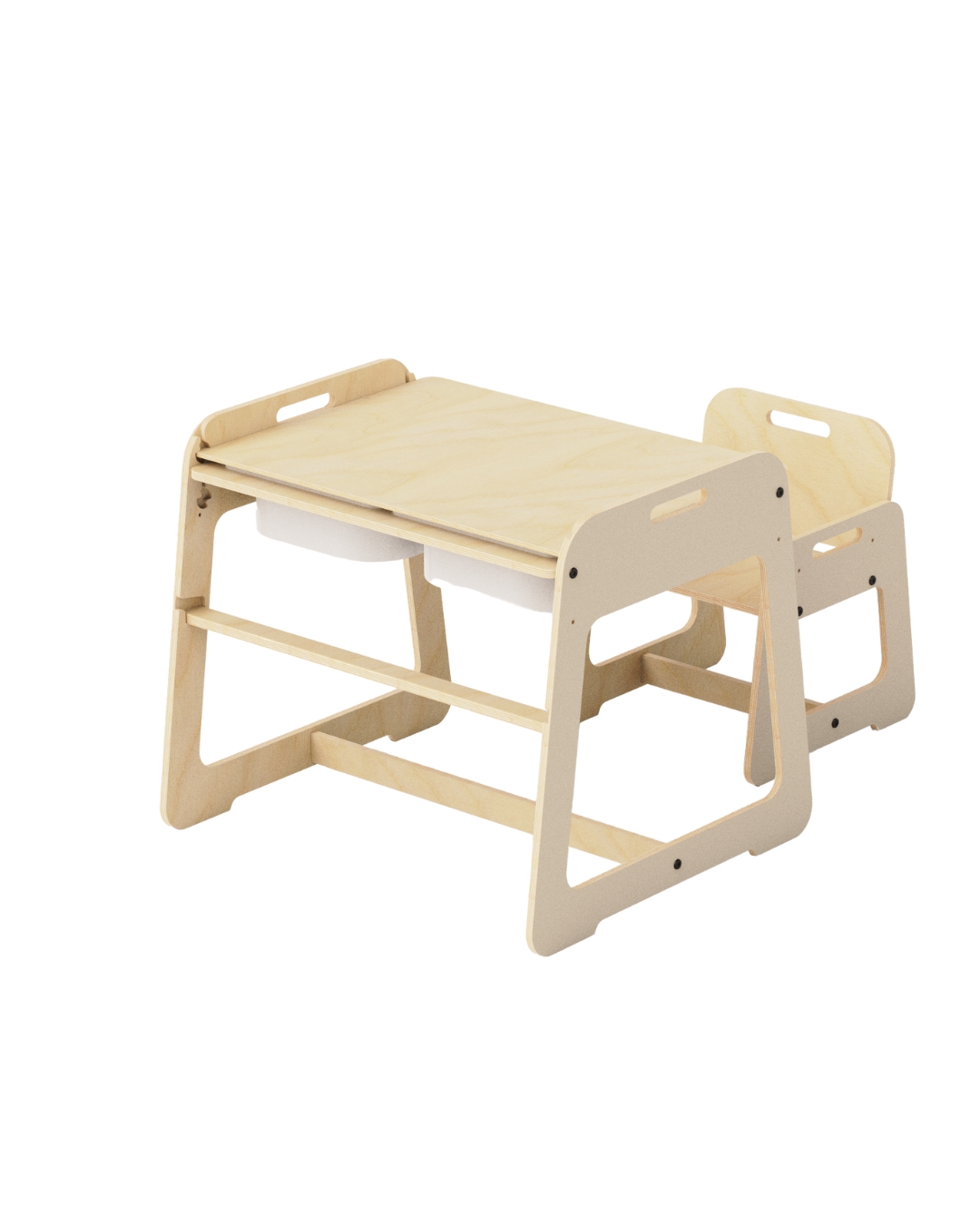 MyTable sto spaja igru i funkcionalnost u modernom dizajnu. Skrivenu površinu za igru i tablu za crtanje upotpunjuju dve podesive visine i kompaktan oblik-idealan za Montessori prostor i savremene domove.