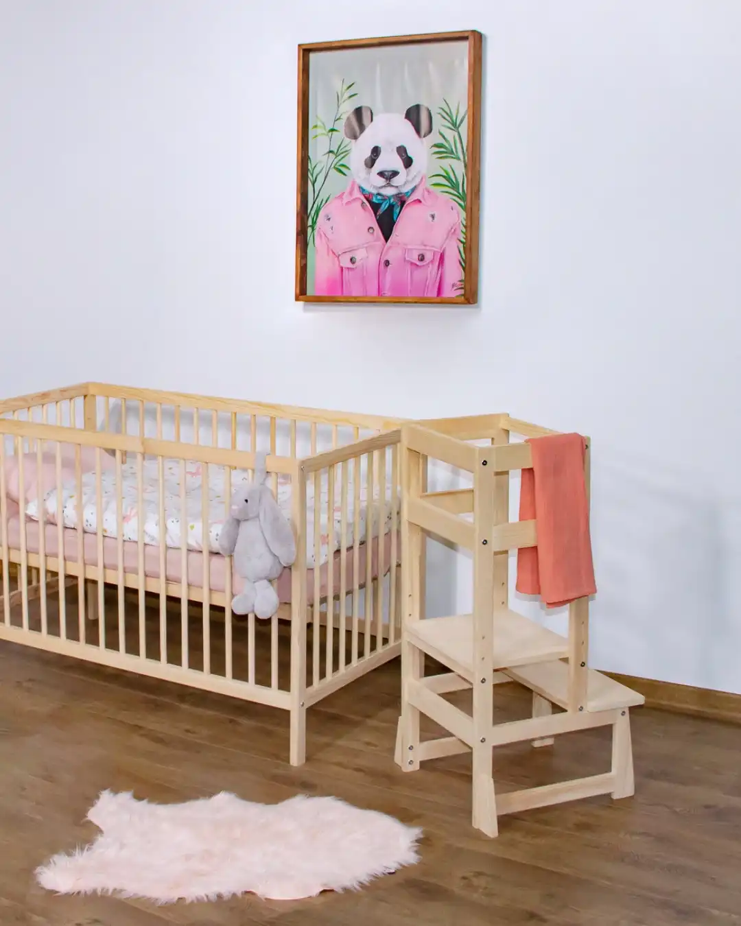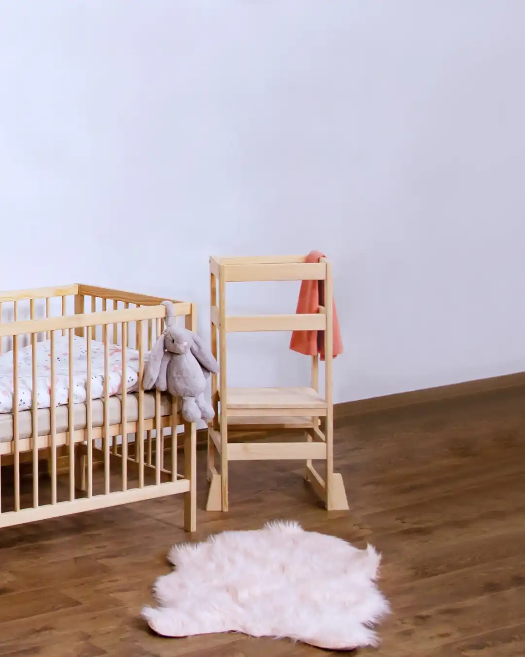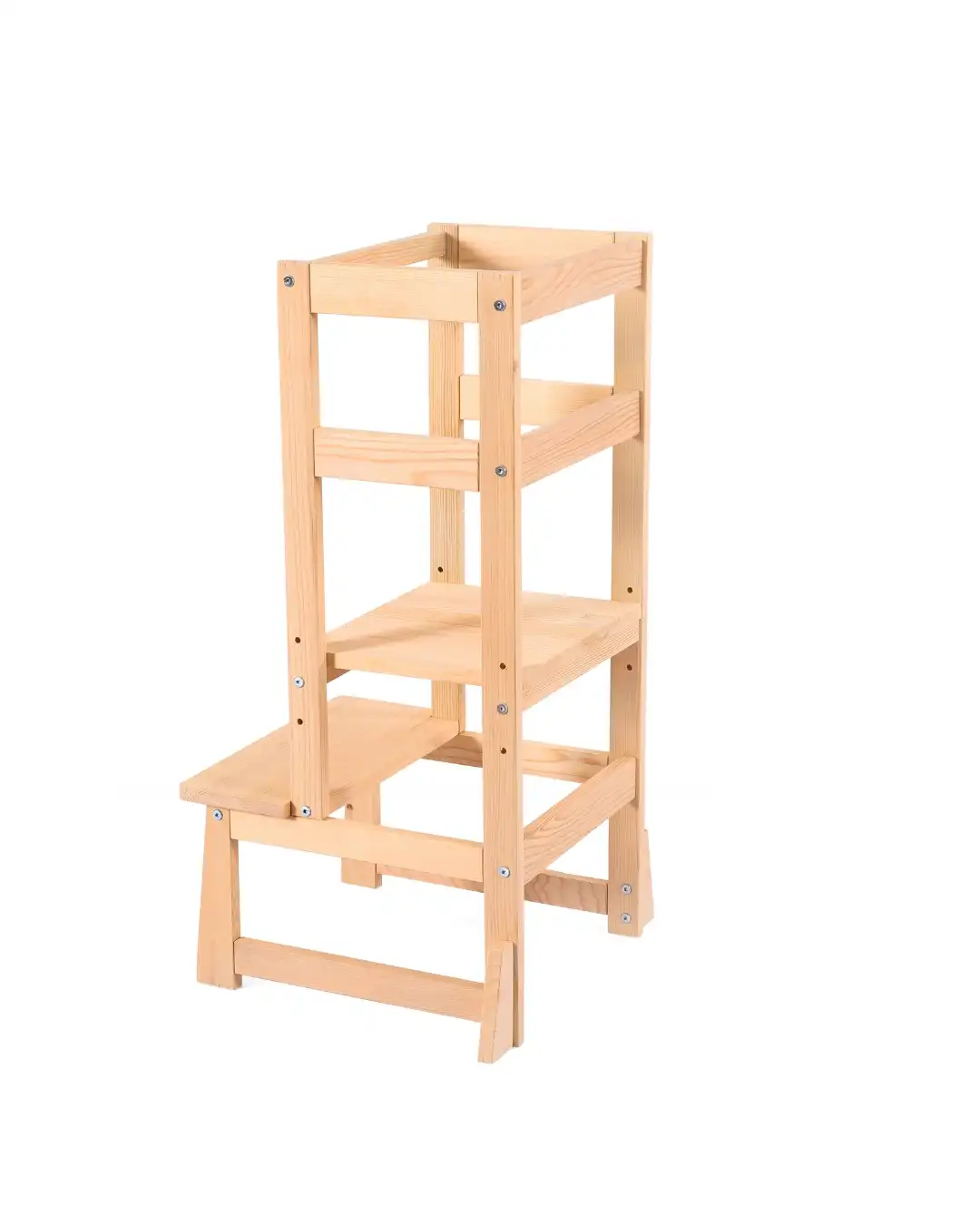 - Toranj za učenje je inovativni komad nameštaja dizajniran da podigne decu do visine radne površine, kako bi mogla aktivno da učestvuju u svakodnevnim aktivnostima