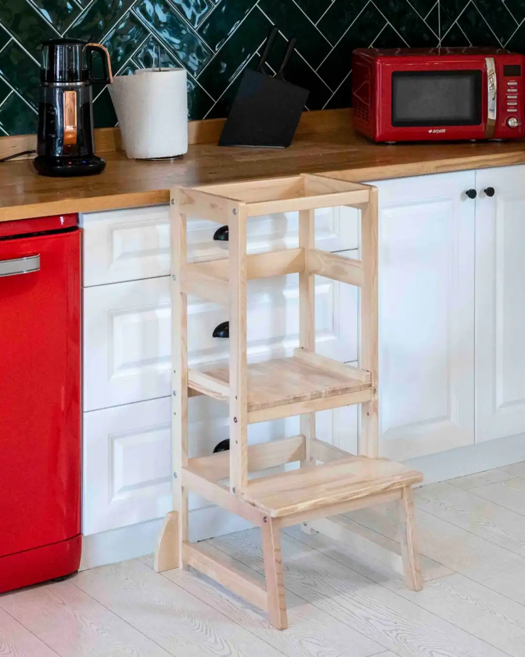 - Motoričke veštine: Penjanje na toranj i njegovo korišćenje za rukovanje kuhinjskim priborom ili drugim predmetima pomaže deci da poboljšaju koordinaciju i ravnotežu