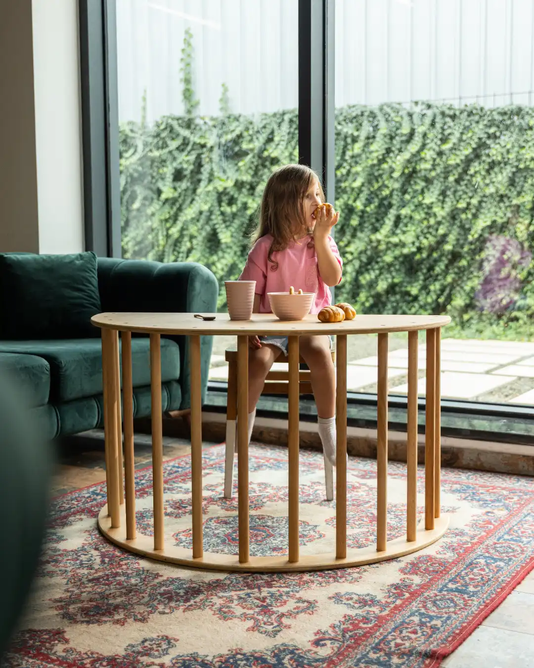 • Povezanost sa prirodom: Prirodni materijali poput drveta mogu pružiti umirujući efekat i osećaj povezanosti sa prirodom, što je posebno važno za emocionalni razvoj dece.