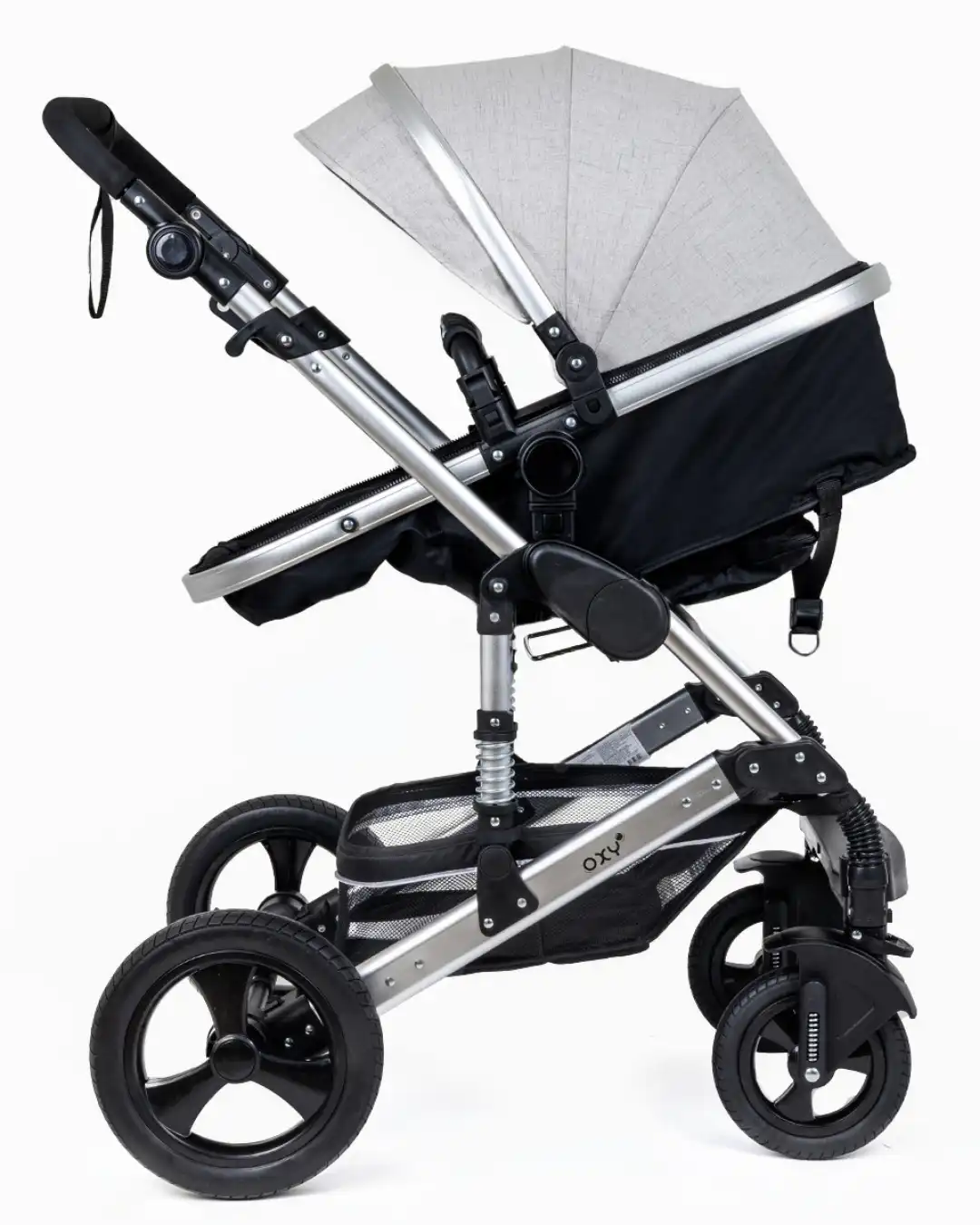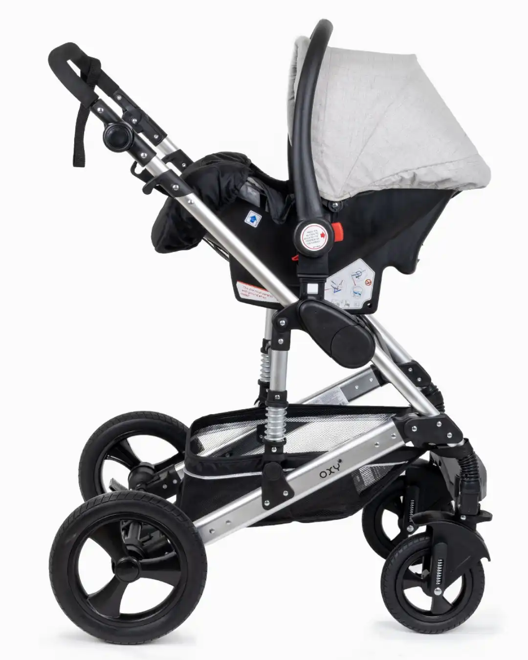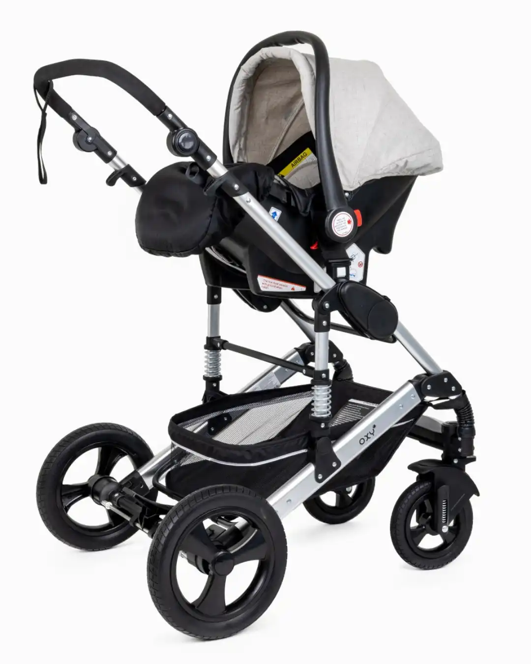 Jungle kolica Oxy sistem 2u1 se sastoji iz kolica, koja se lako mogu transformisati iz korpe u sportsko sedište i autosedišta za bebe grupe 0+.
