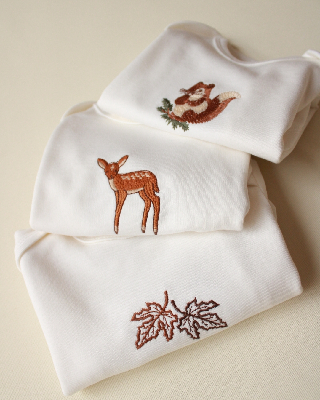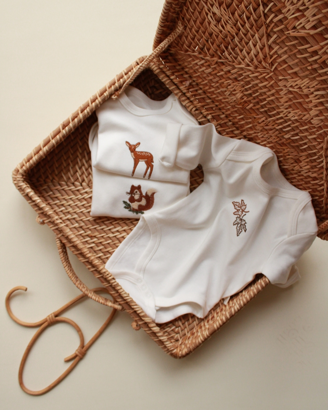 U setu dolaze tri bodića sa vezenim natpisima.