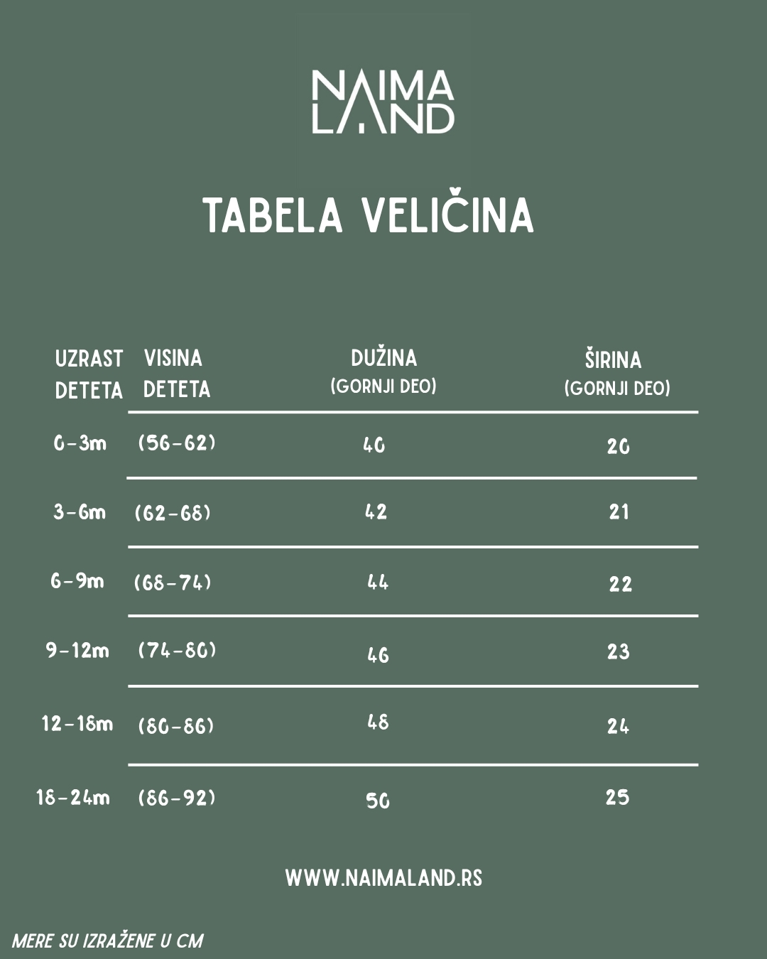 Na poleđini veza ušivena je platnena međupostava koja ne šteti bebinoj koži. U setu dolaze tri bodića sa na kojima su izvezeni motivi limuna, ananasa i avokada.