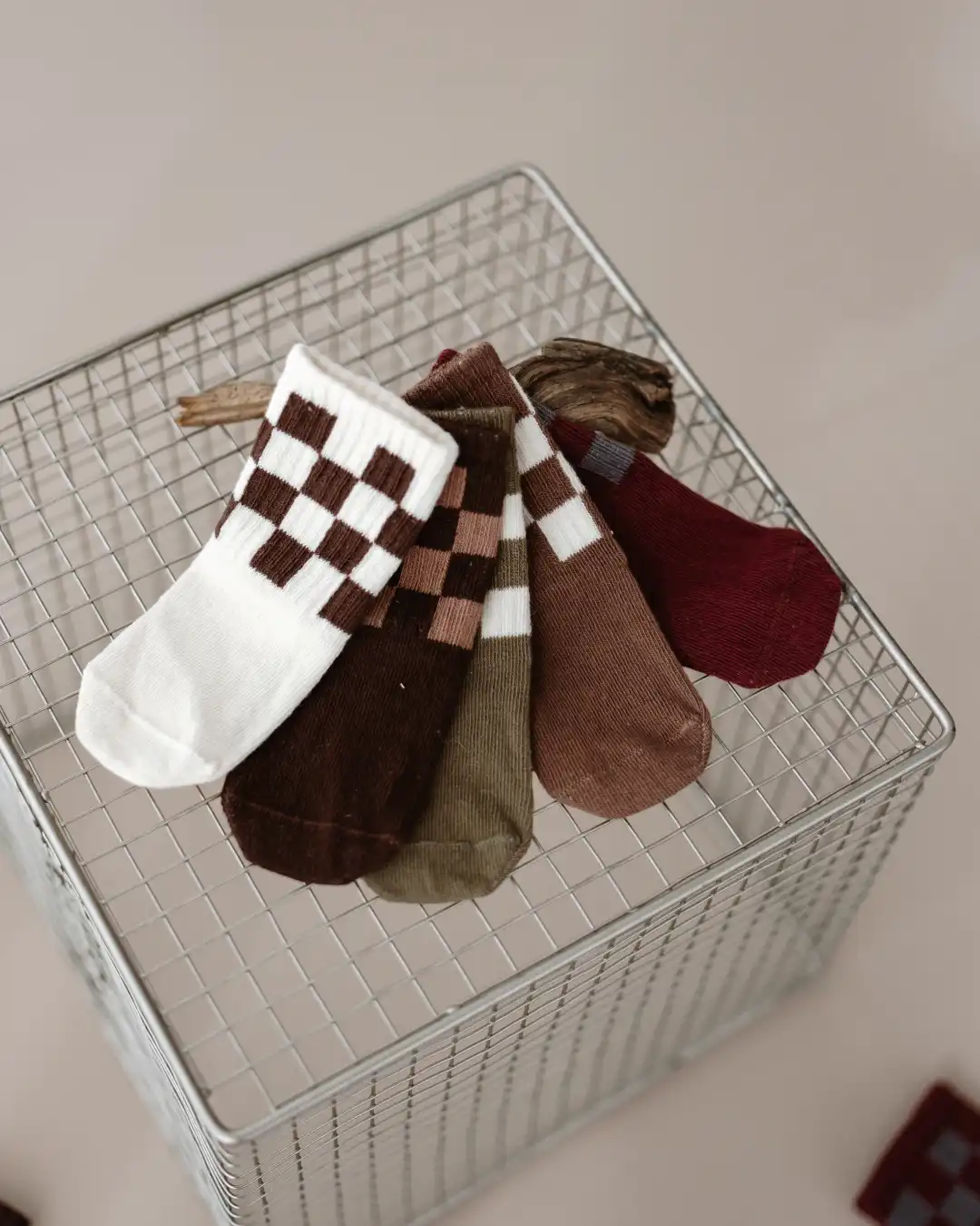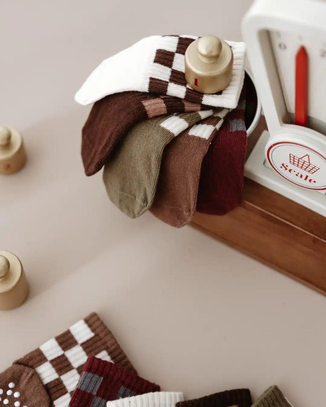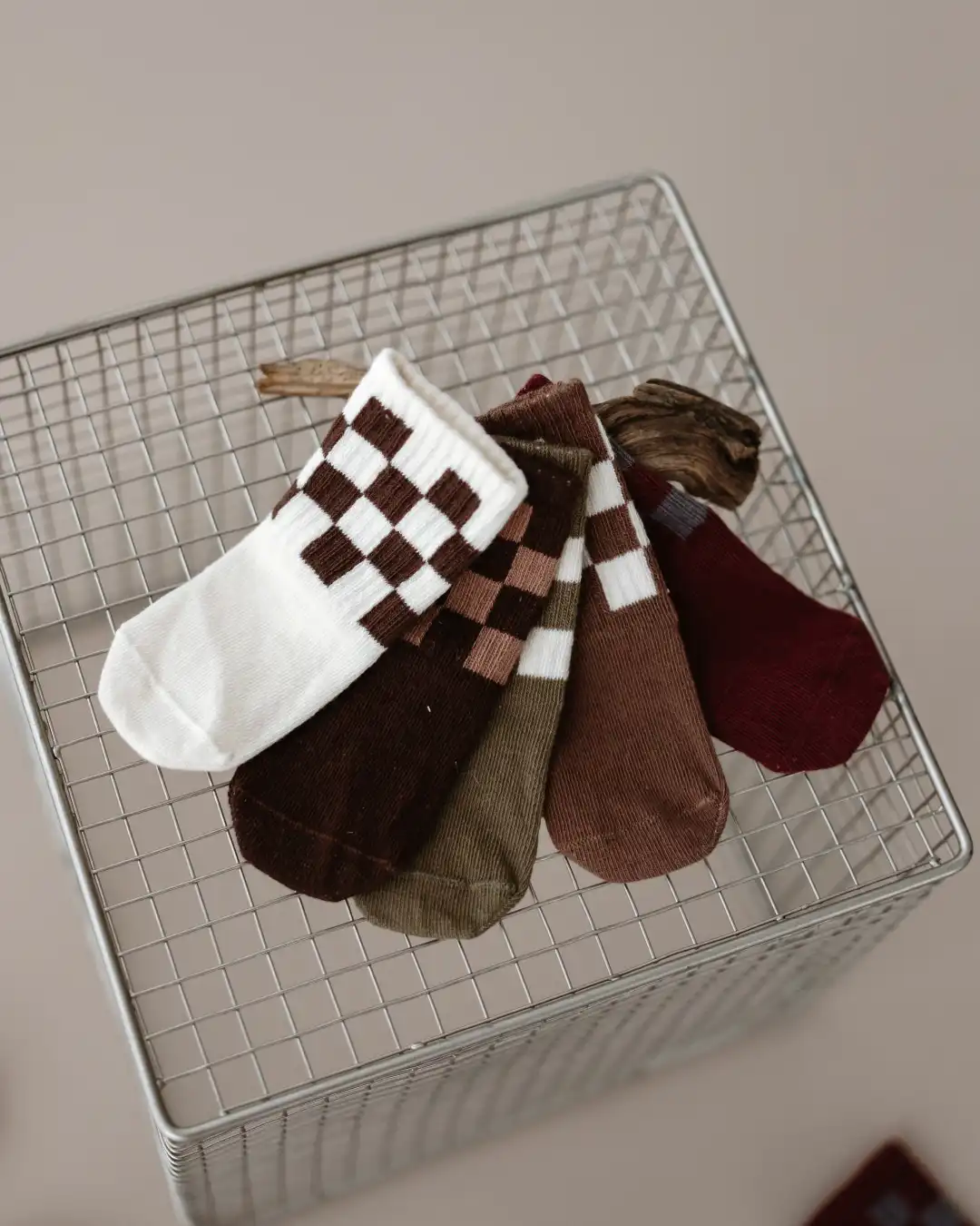 Set se sastoji od 5 pari čarapa u maslinastoj, krem, braon, tamno braon i bordo boji