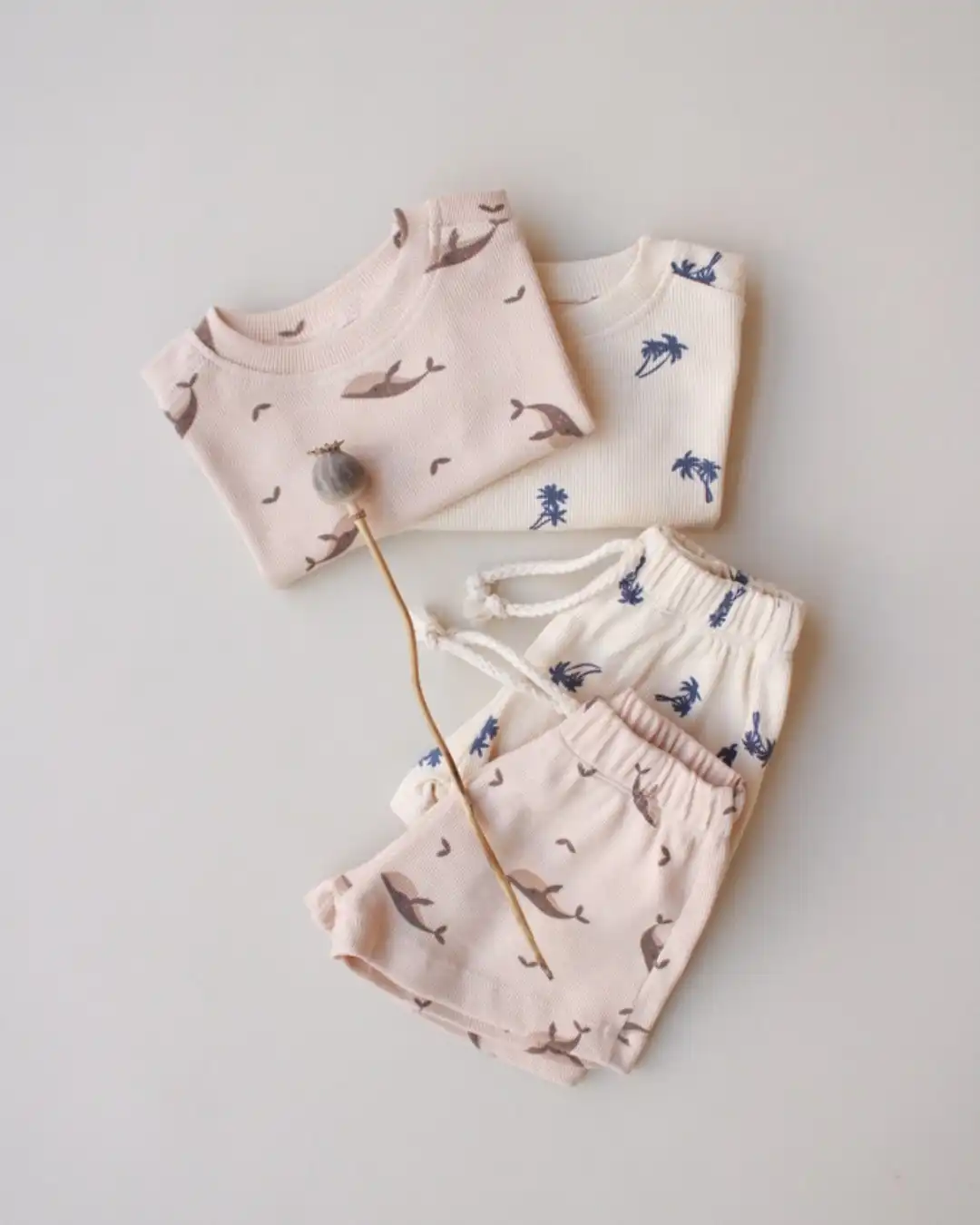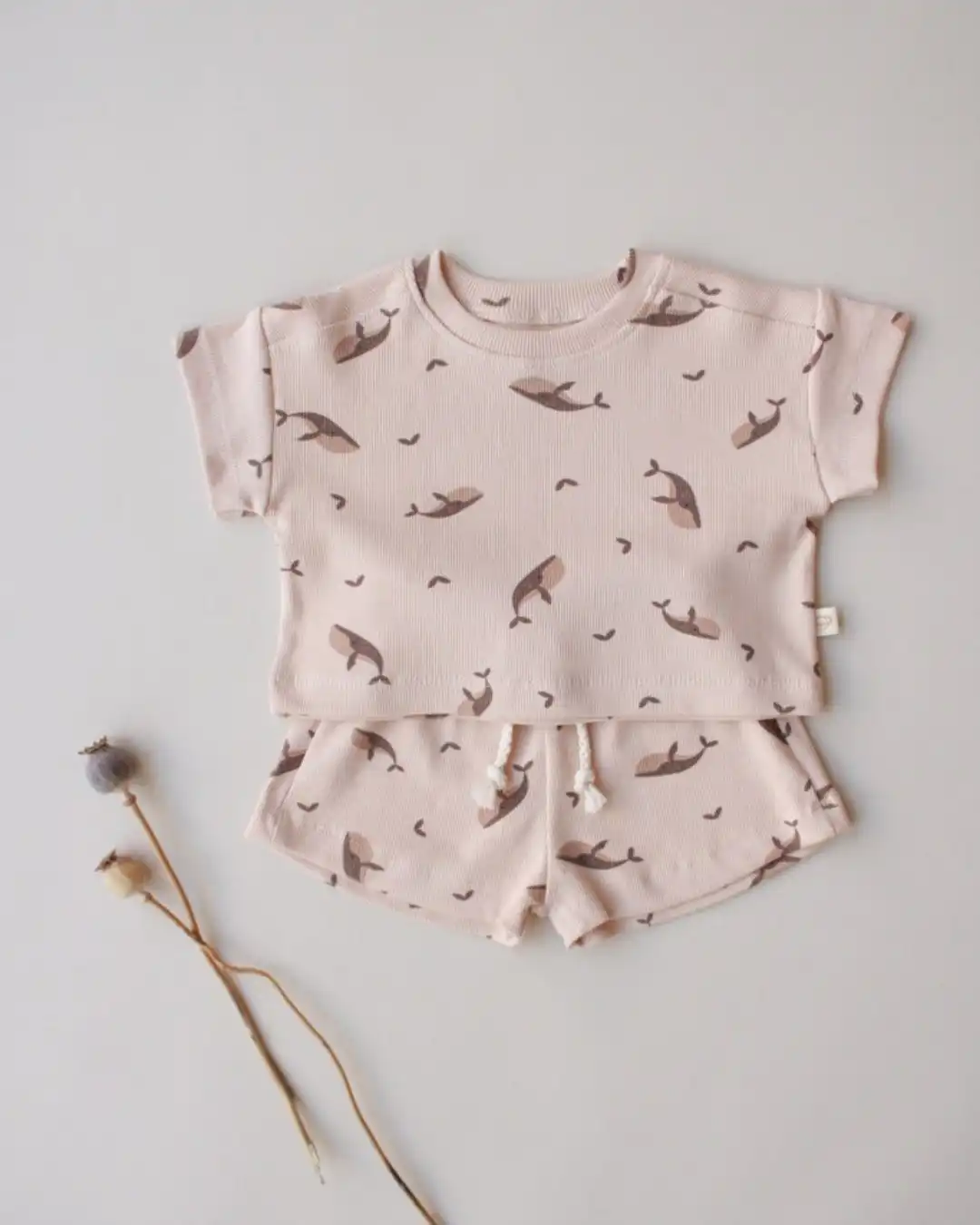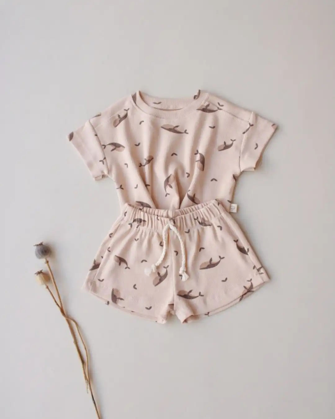 Komplet šorc i majica sa motivom kita će pružiti najmlađima posebnu dozu slatkoće i savršen je spoj udobnosti i stila. 🌿