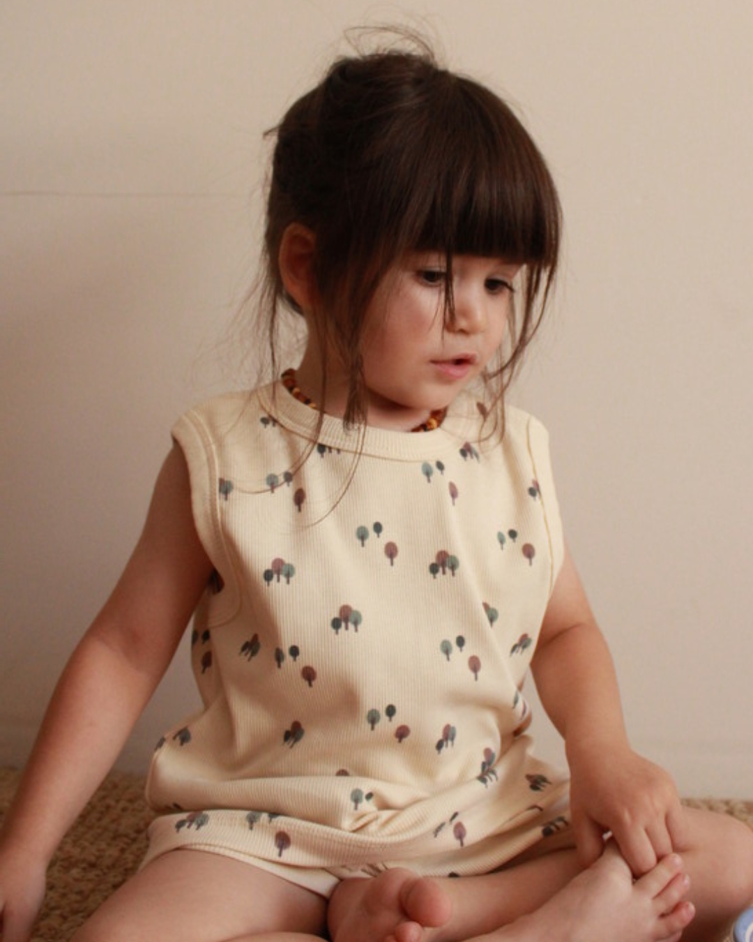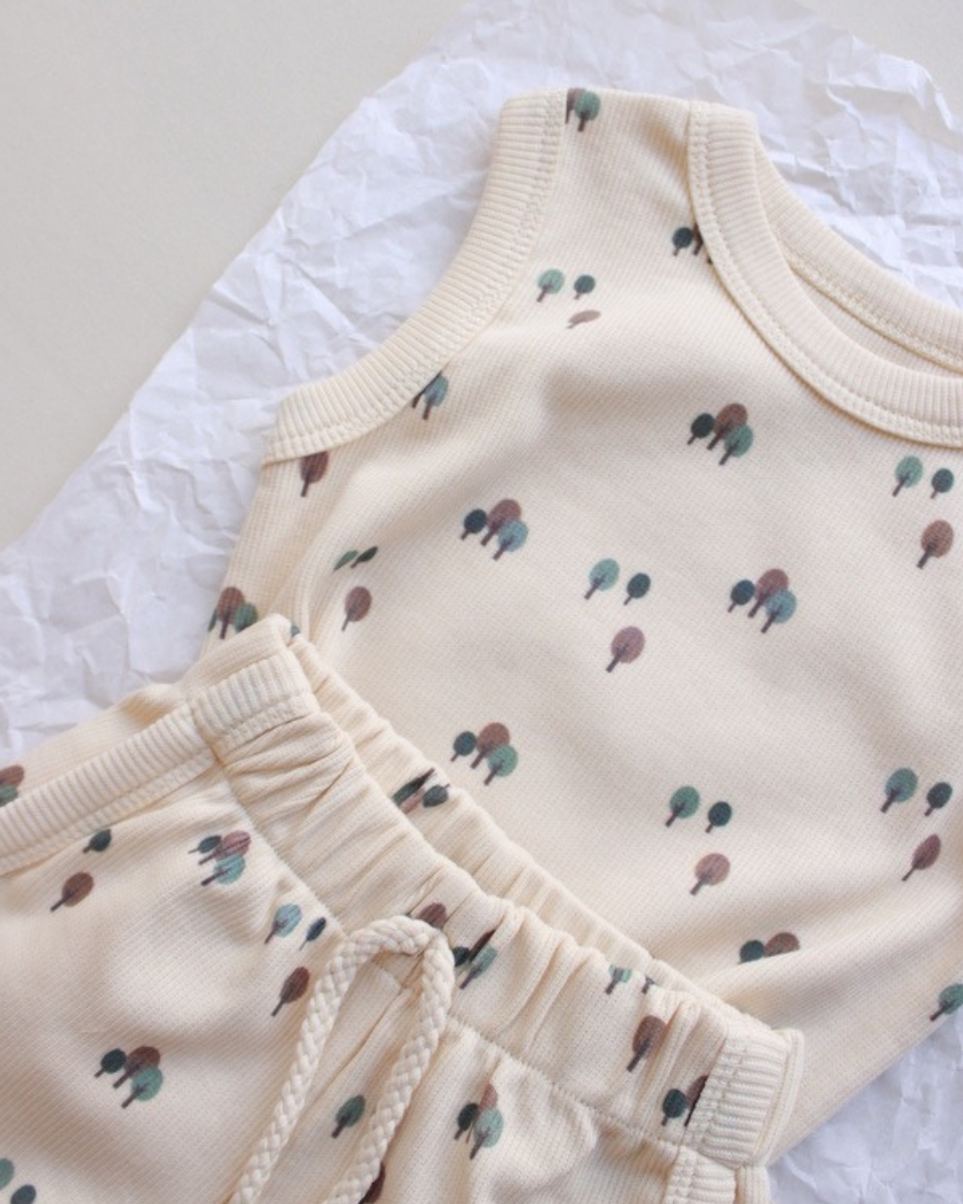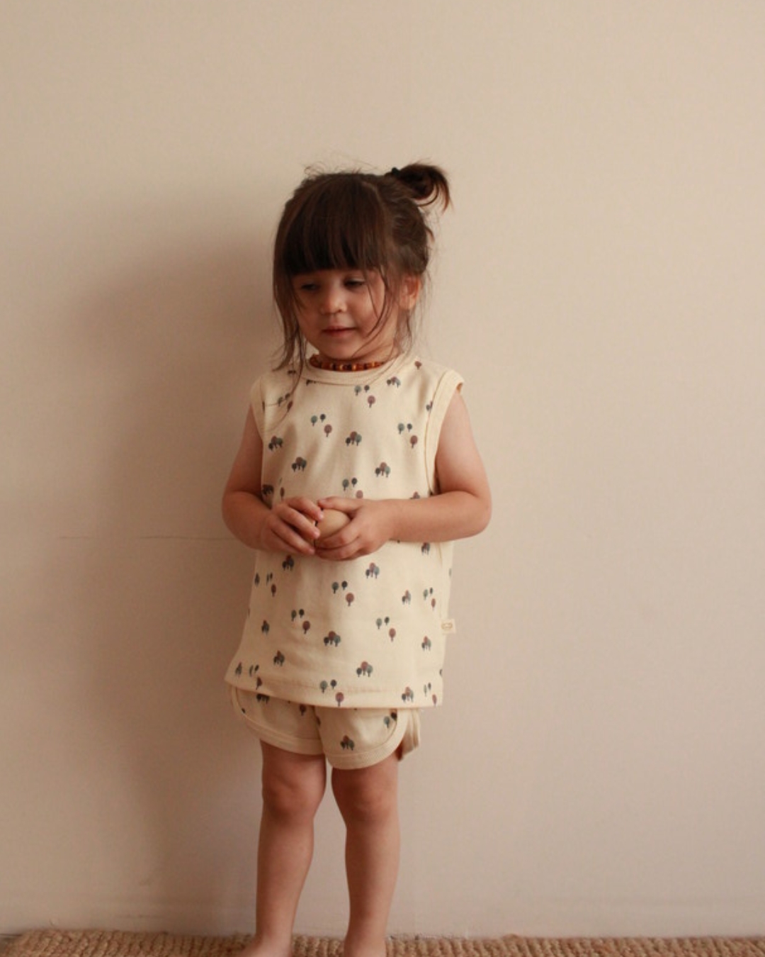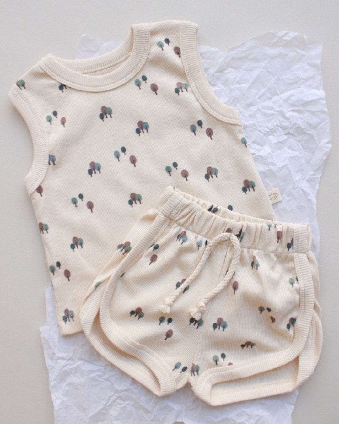 Komplet šorc i majica sa neodoljivim motivom drveća će pružiti najmlađima posebnu dozu slatkoće i savršen je spoj udobnosti i stila. 🌿
