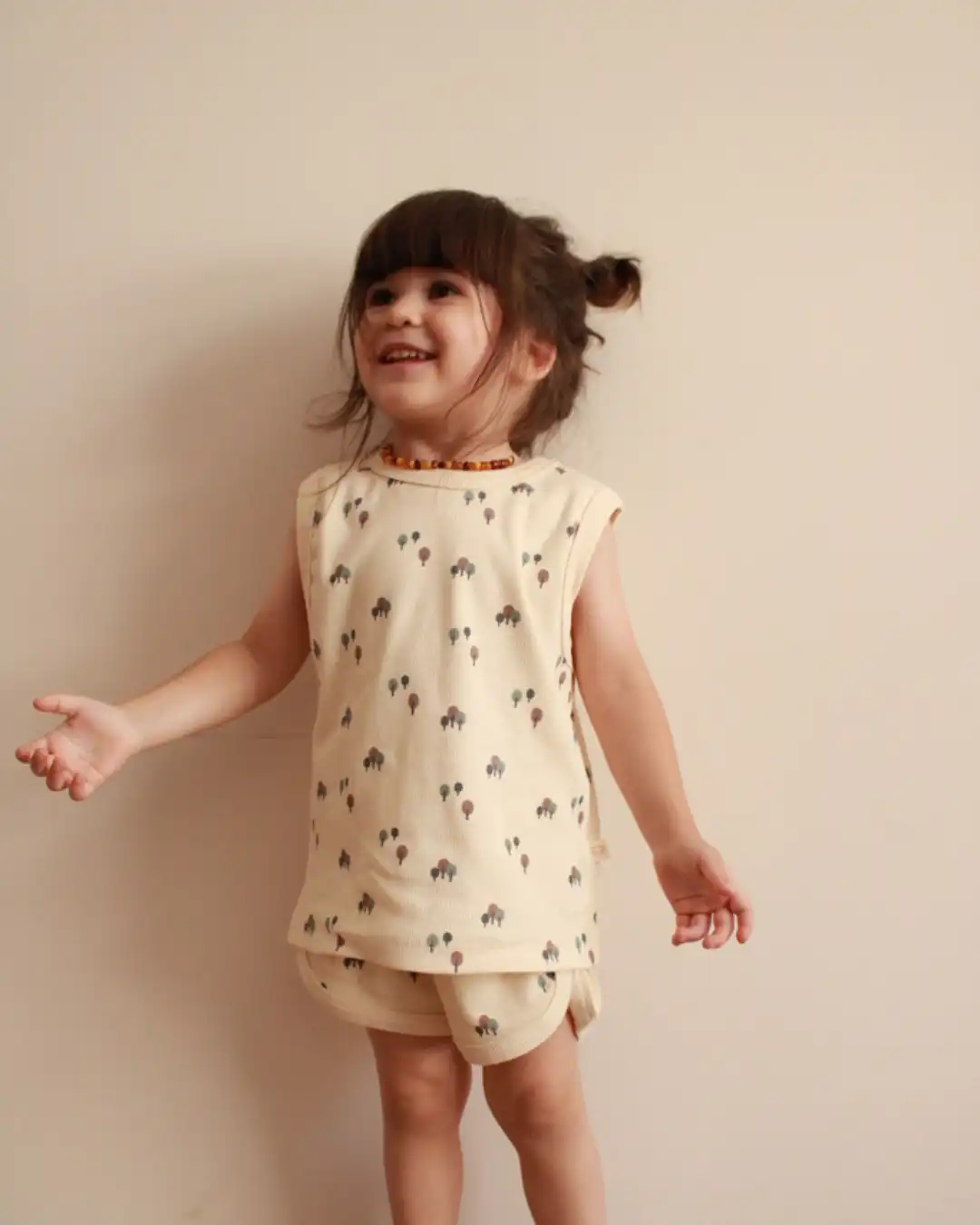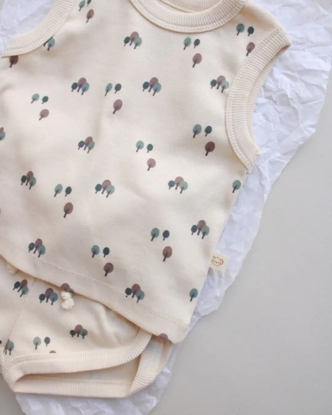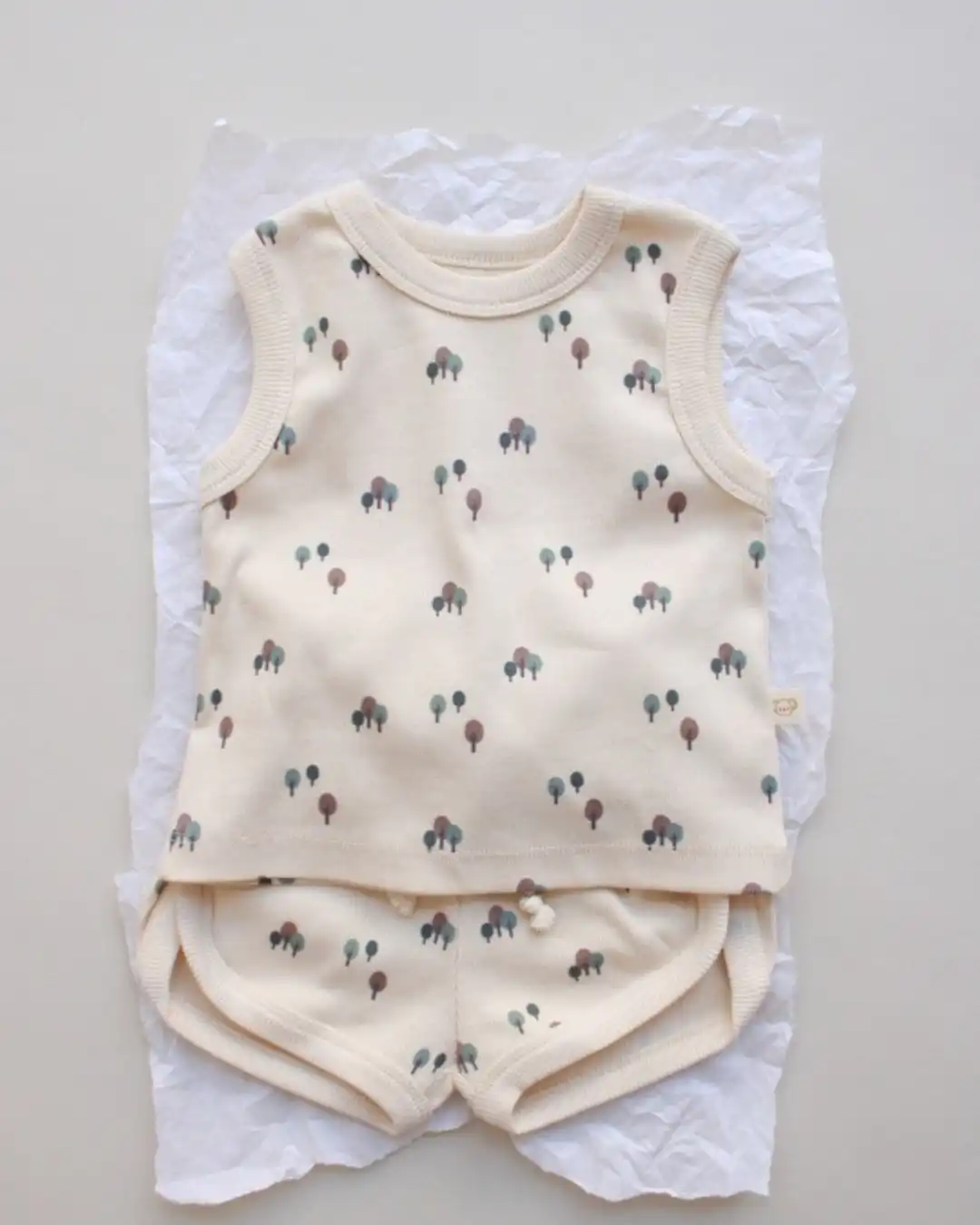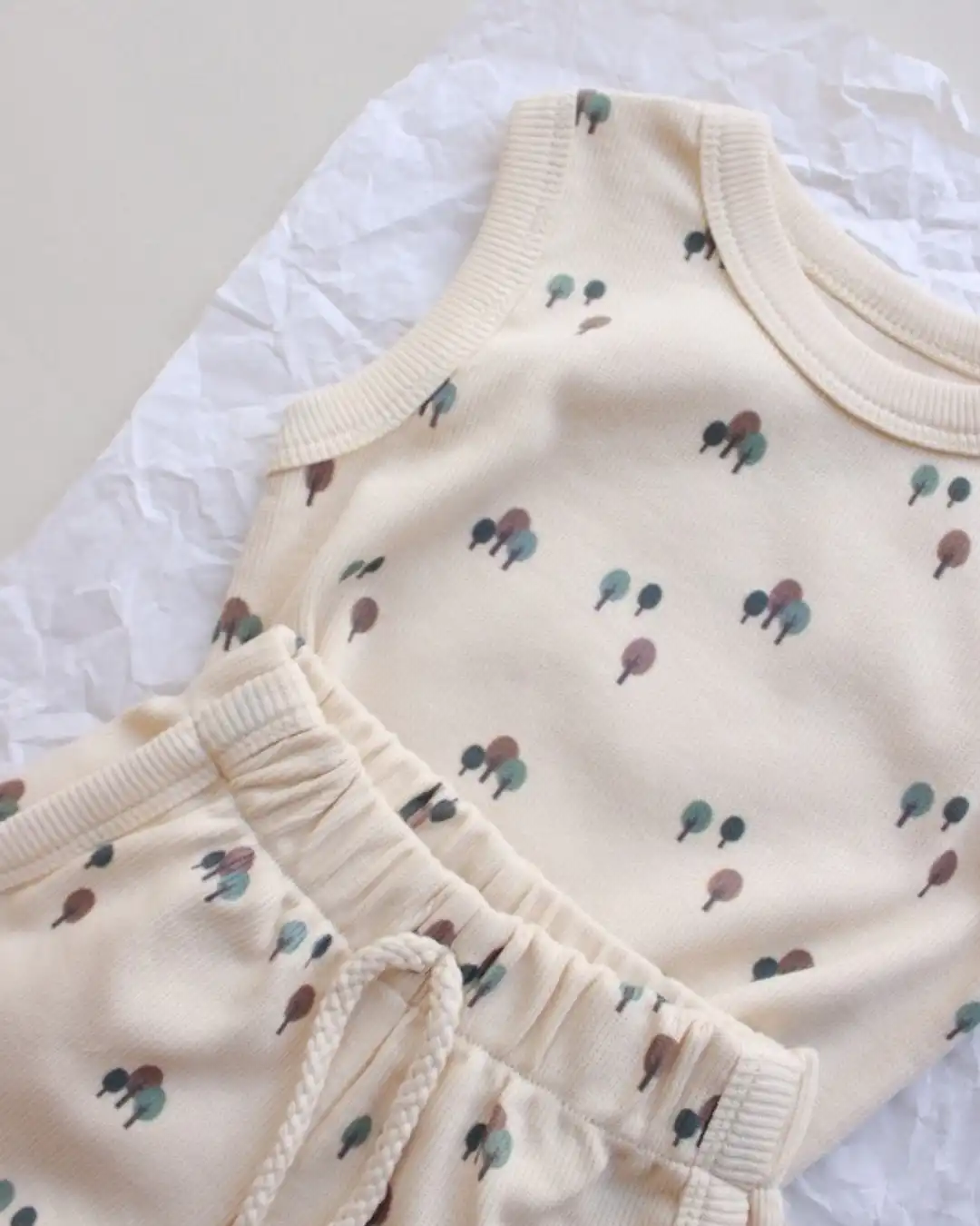 Komplet šorc i majica sa neodoljivim motivom drveća će pružiti najmlađima posebnu dozu slatkoće i savršen je spoj udobnosti i stila. 🌿