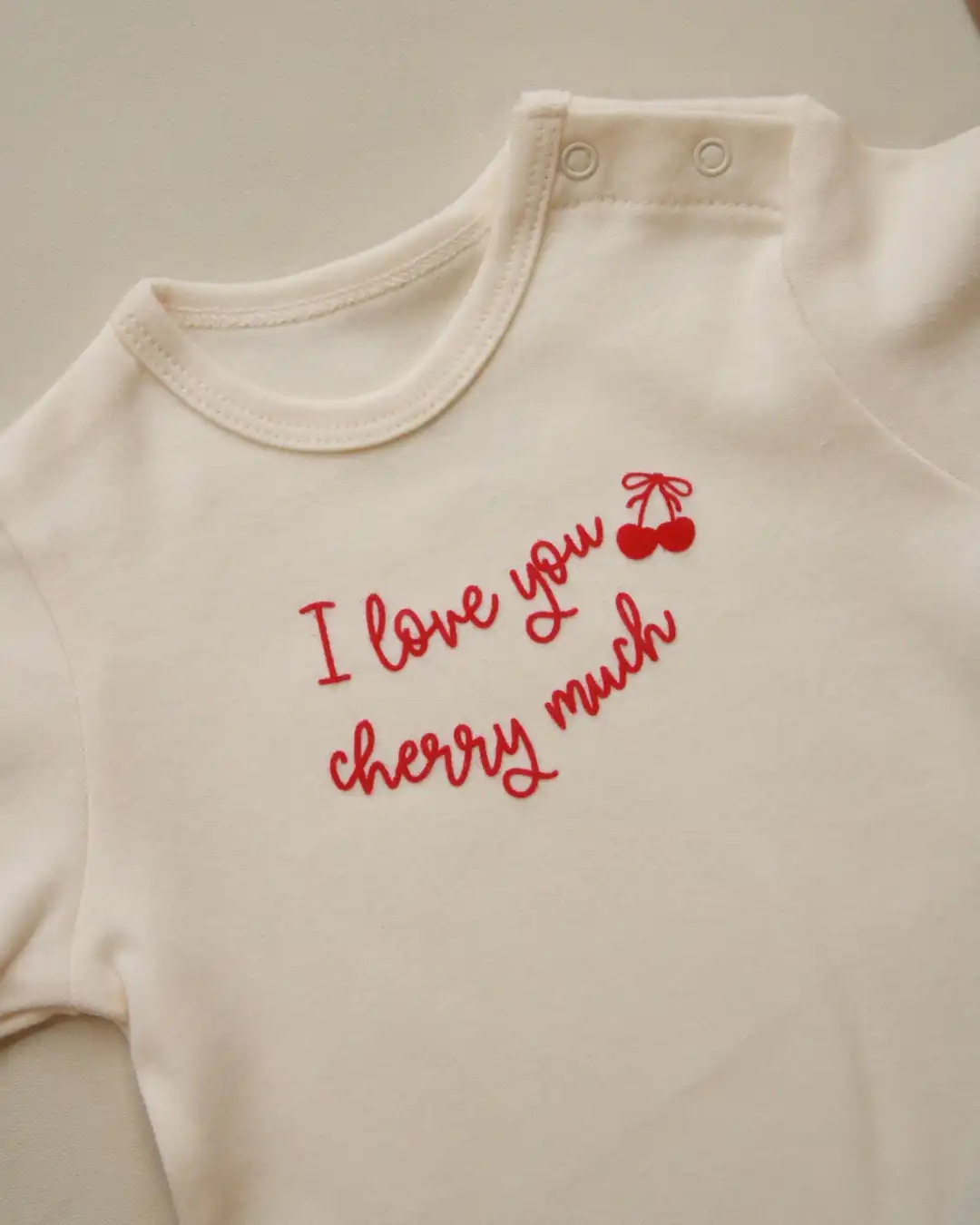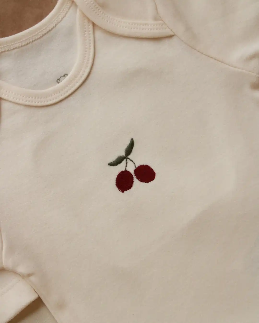 Ovaj nežni bebi komplet sa motivom trešnje je primer savršenog spoja udobnosti, funkcionalnosti i predivnog, čistog dizajna.