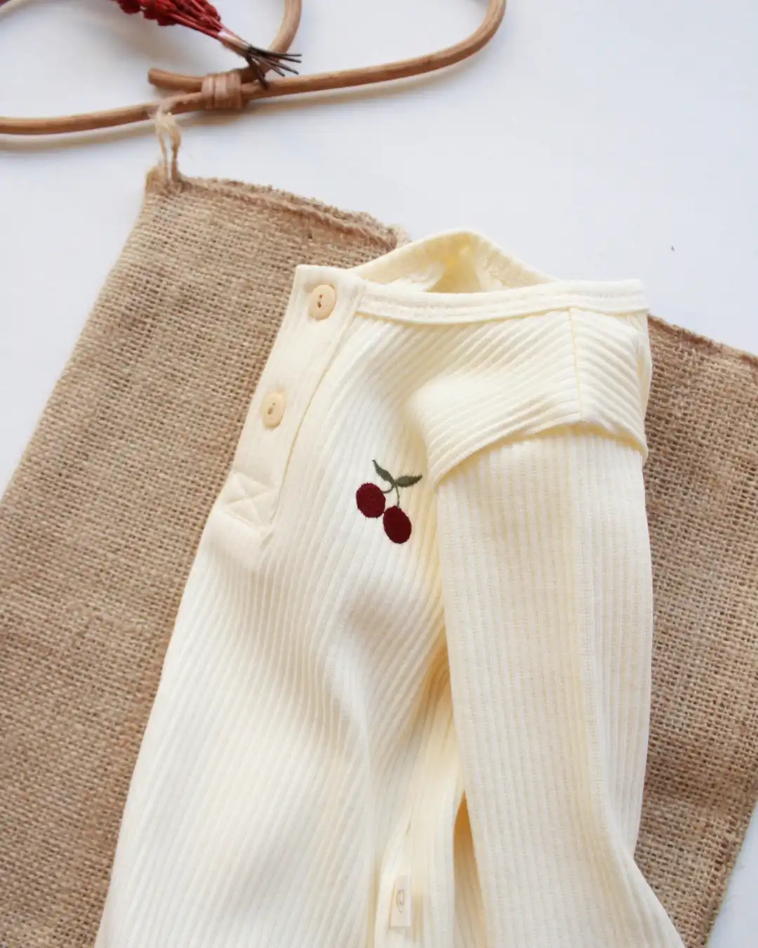 Ovaj nežni bebi komplet sa motivom trešnje je primer savršenog spoja udobnosti, funkcionalnosti i predivnog, čistog dizajna. Na prvi pogled deluje jednostavno, ali upravo ta jednostavnost je njegova najveća snaga — izgleda luksuzno, prirodno i savršeno za svaki trenutak tokom dana.