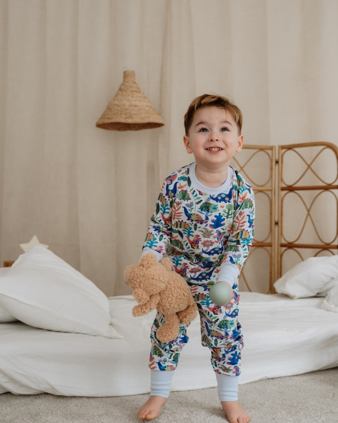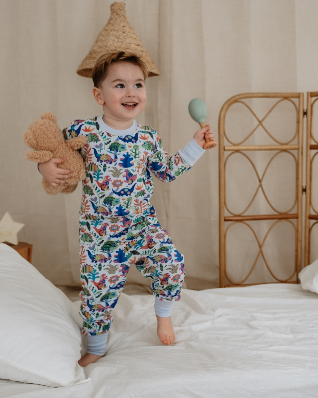 Neka vaše dete uživa u mirnom i prijatnom snu uz našu meku pamučnu pidžamu. Napravljena od kvalitetnog i prozračnog materijala, savršeno je nežna prema osetljivoj dečijoj koži. Udoban kroj omogućava slobodno kretanje, dok veseli motivi čine odlazak na spavanje zabavnijim.