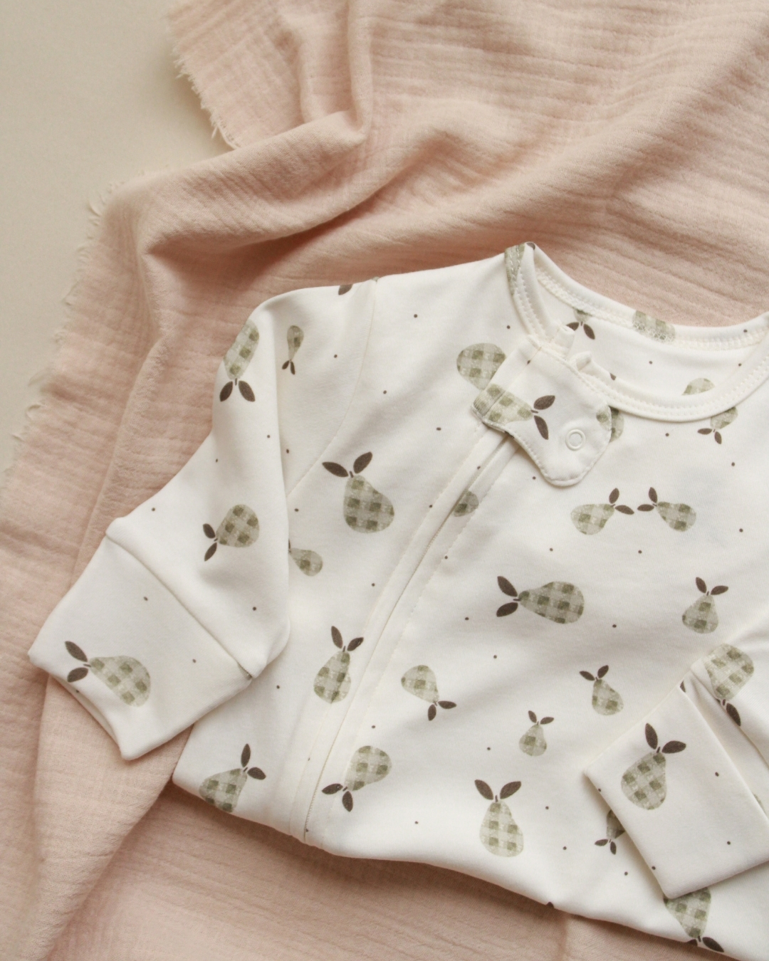 Motivi kruškica čine ovu zeku savršenom za prve fotografije, poklone za specijalne prilike ili kao prvu „specijalnu“ odeću u kojoj će beba izgledati prelepo