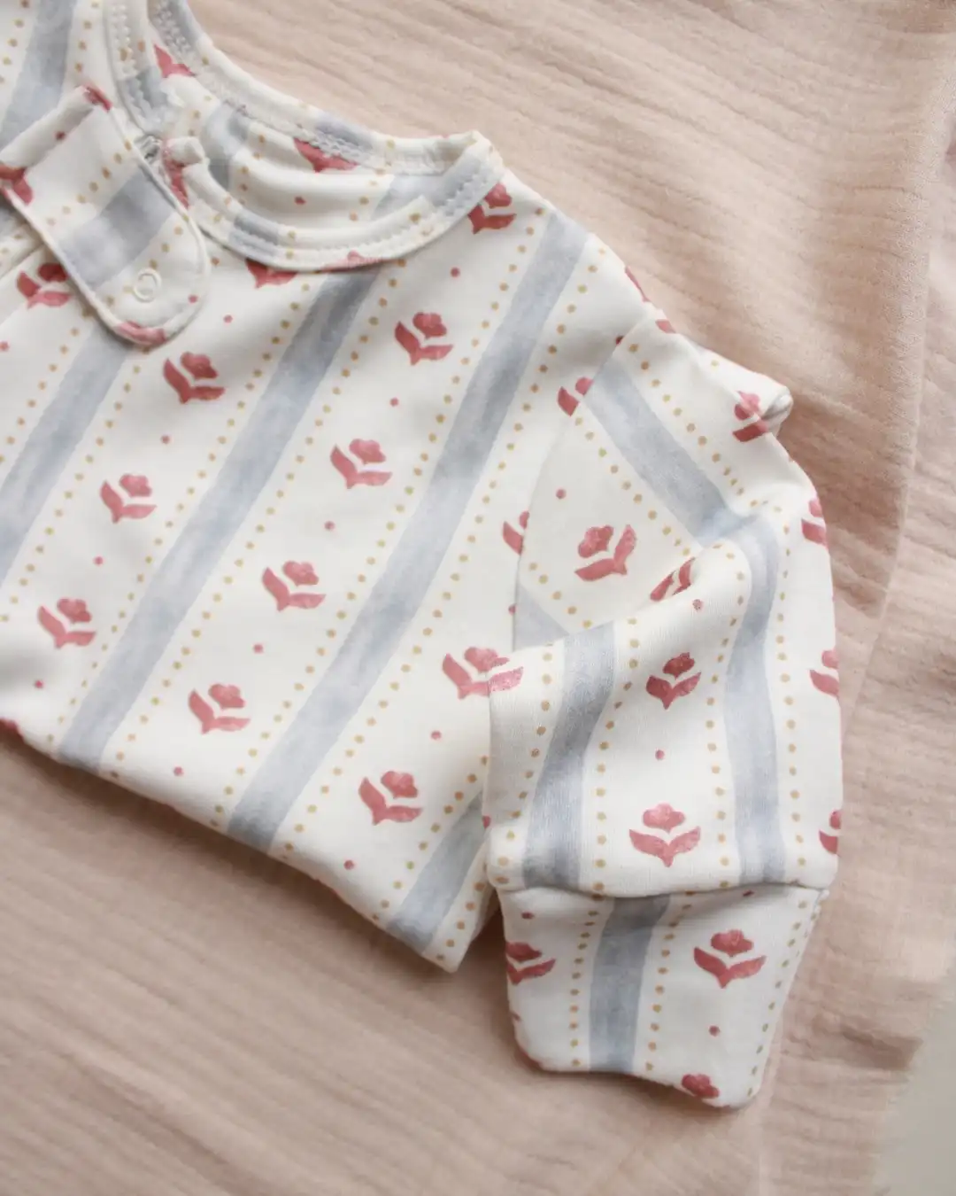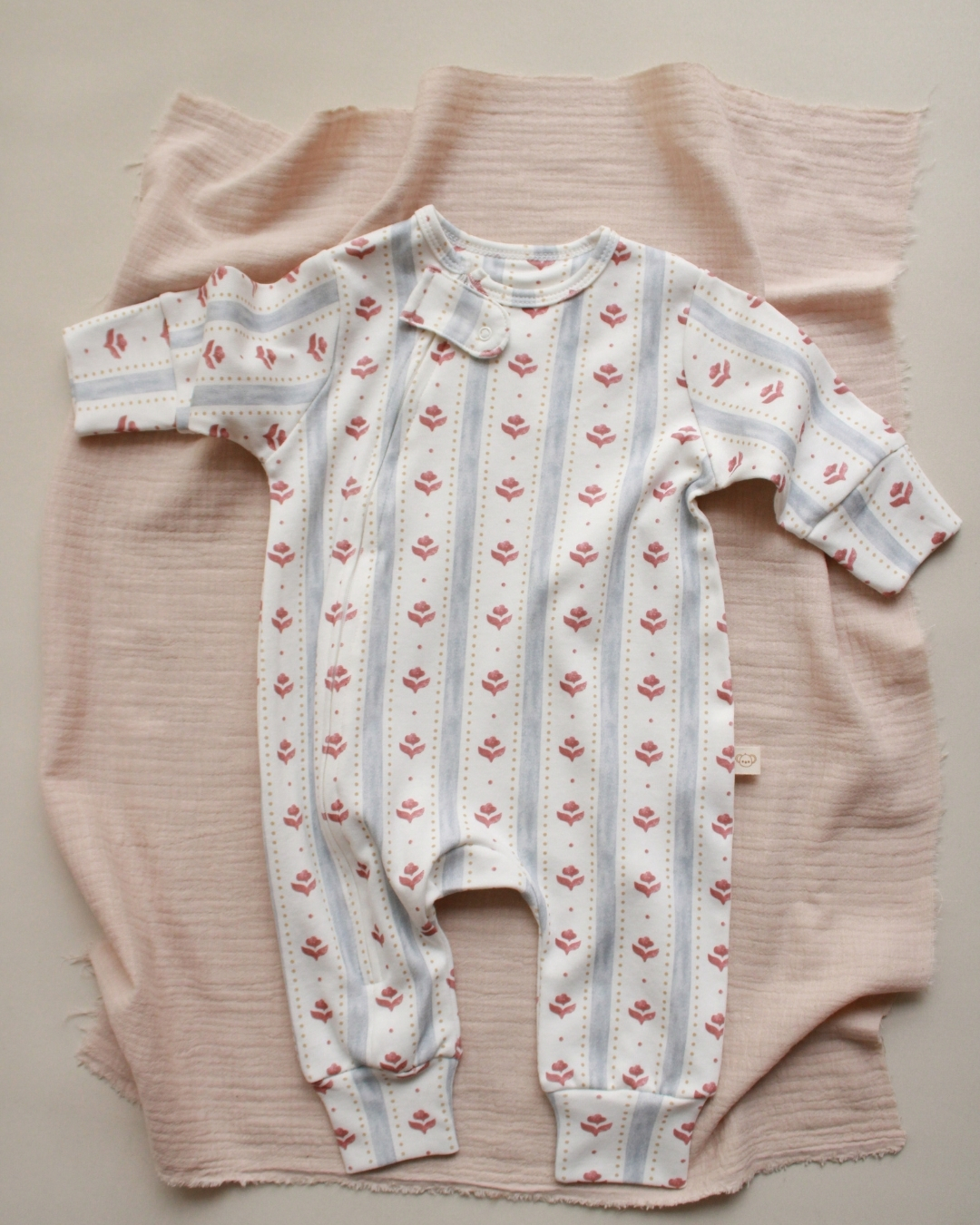 Motivi cvetića čine ovu zeku savršenom za prve fotografije, poklone za specijalne prilike ili kao prvu „specijalnu“ odeću u kojoj će beba izgledati prelepo