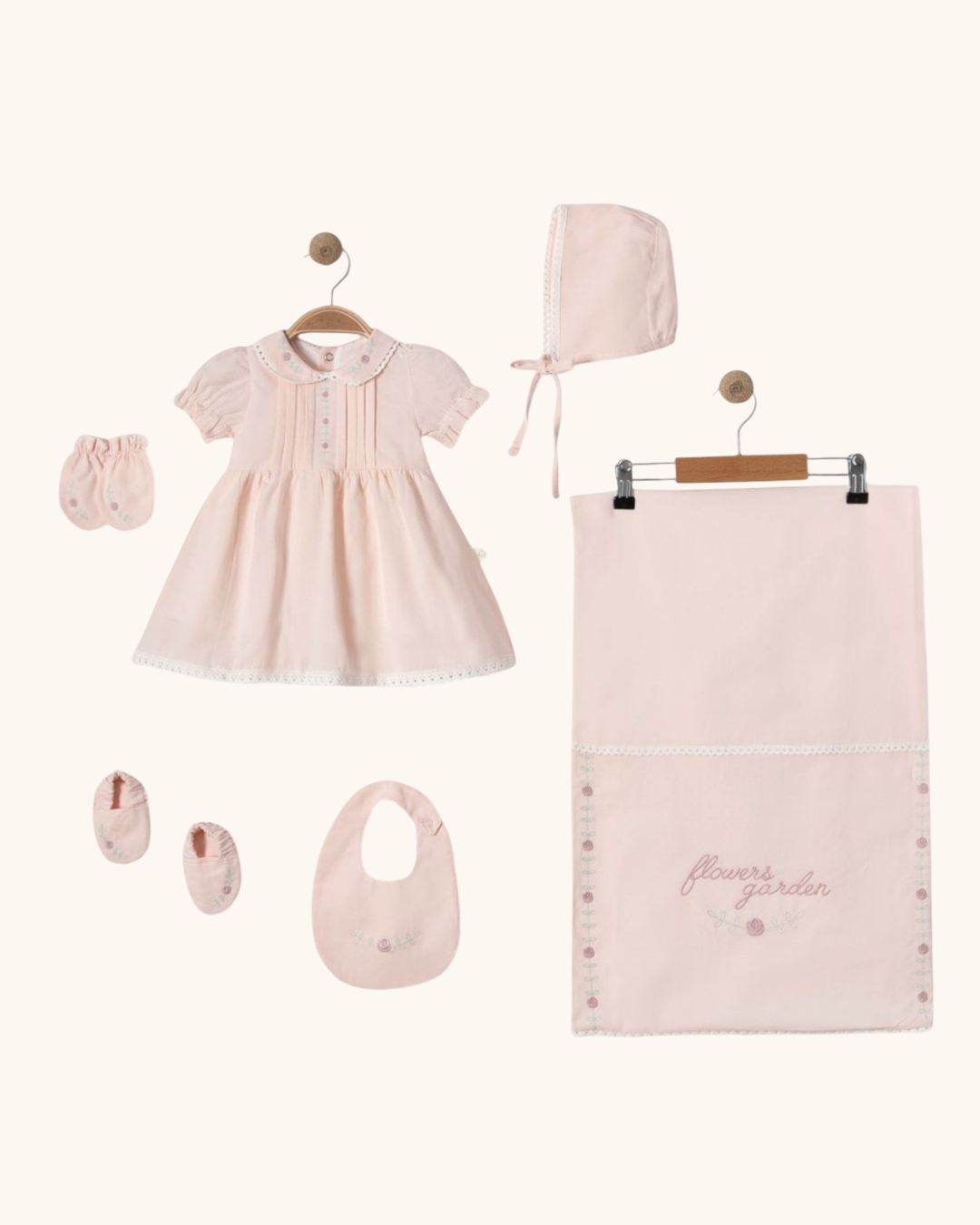 - U setu dolazi haljinica, kapa, portikla, rukavice, cipelice i ćebe.