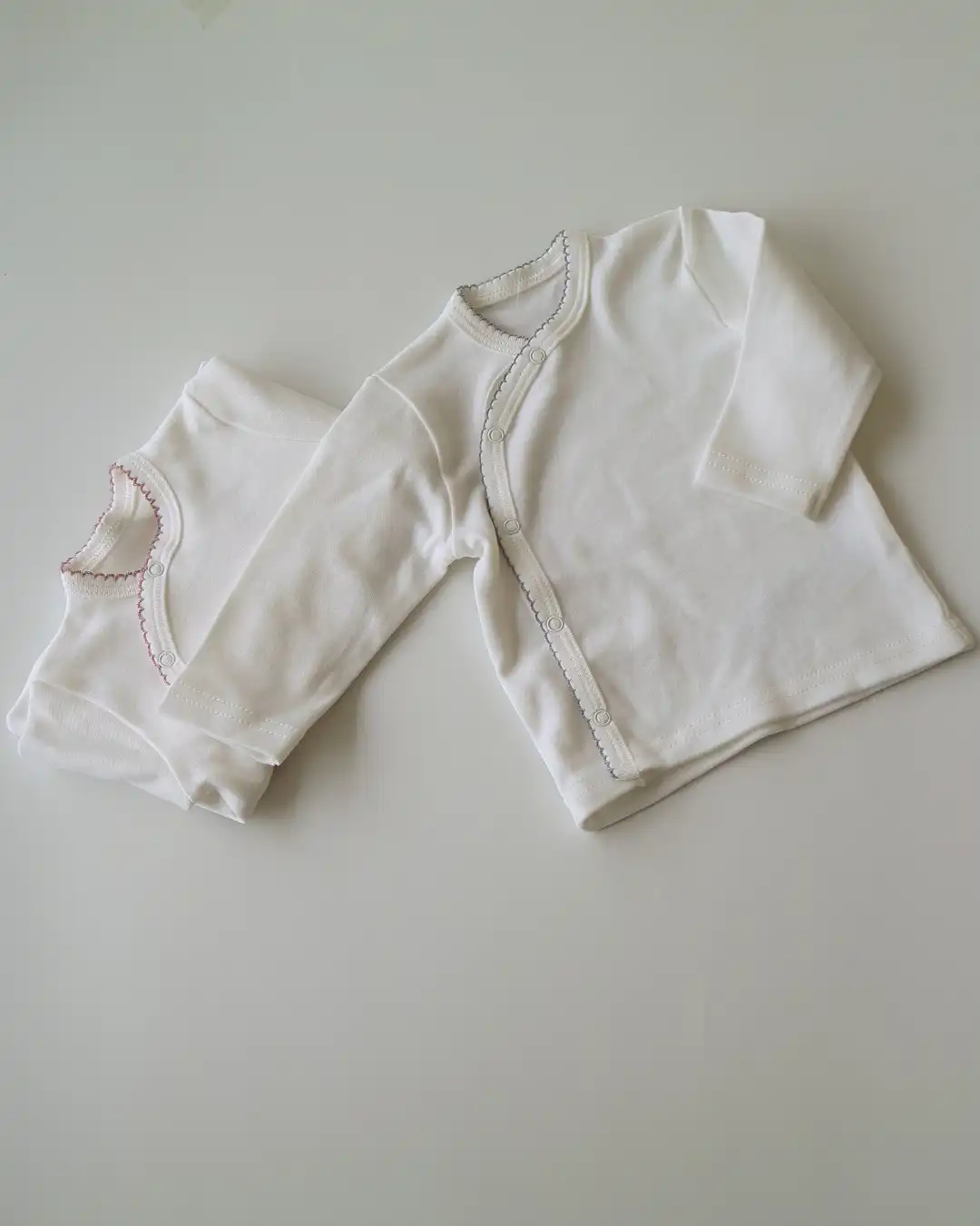 U setu dolazi zeka, benkica, bodić dugih rukava na preklop, bodić kratkih rukava, pantalonice, kapa, portikla, rukavice, maramica i ćebence.