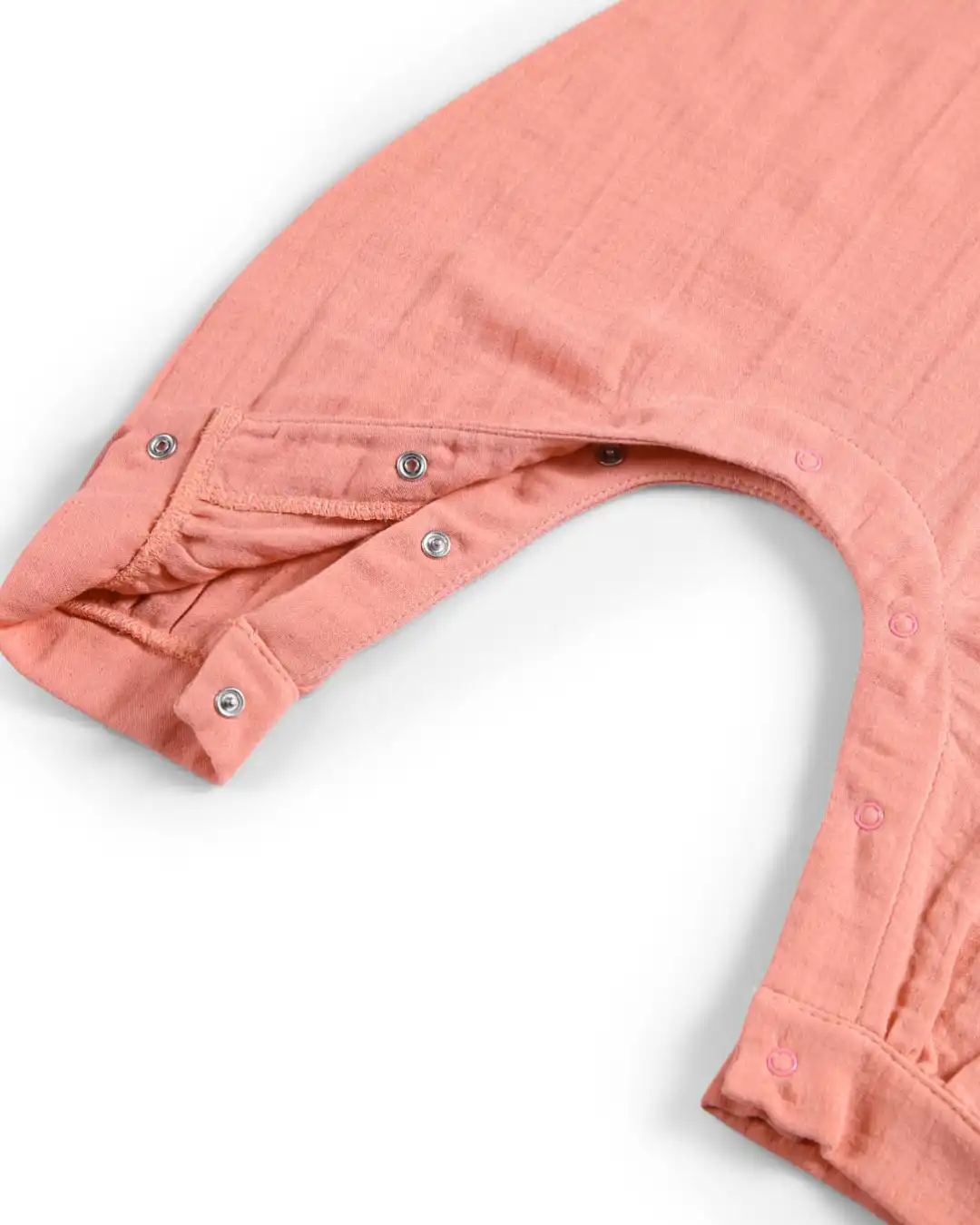 Lagana vreća za spavanje u nežnoj koralnoj boji je savršena za udobnost i slobodu pokreta tokom noći – za roditelje koji traže praktično i udobno rešenje za svoje dete!