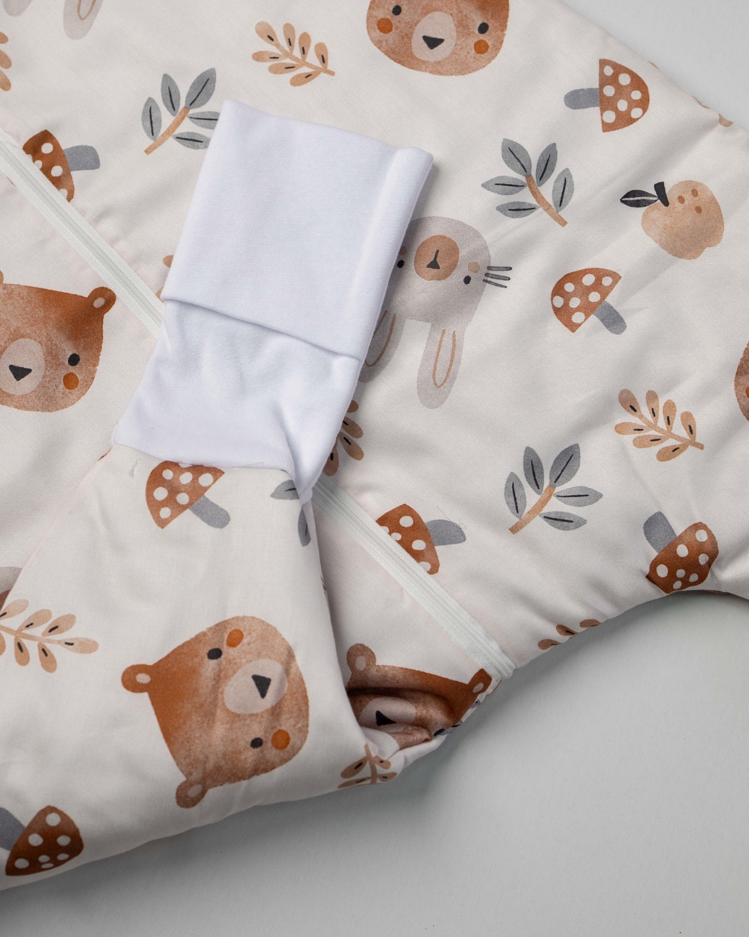 Pružite svojoj bebi miran i udoban san u ovom preslatkom džaku za spavanje oslikanom motivima iz bajkovite šume, sa likovima medvedića, zeka i šumskih pečuraka.